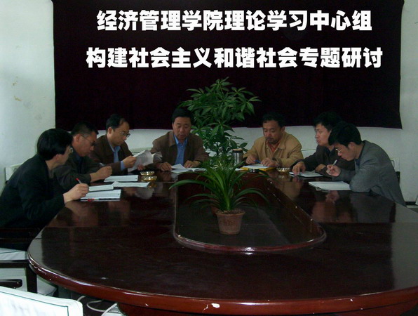 6月3日上午,经济管理学院理论学习中心组在会议室召开构建社会主义和谐社会专题学习研讨会议,学院党委成员出席了学习会。