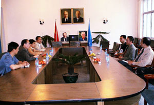 吉林省吉林工程技术学院院长白志敏教授、职业技术教育杂志社副社长、副总编刘海、该院外事科科长王宝龙等。 会见时,双方相互介绍了本校的情况,就双方共同与法国多姆省工商联合会合作项目进行了商谈。整个会见是在亲切友好的气氛中进行的。