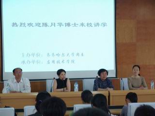 6月13日下午,哈工大陈月华博士应邀在万象城西区主楼学术报告厅作了题为“数字技术与影像革命”的学术讲座。此次讲座是万象城第七届校园文化艺术节系列学术讲座之一,由校团委主办、应用技术学院承办。讲座由应用技术学院副书记、副院长马金权主持,哈工大人文学院主办的黑龙江复合人才专修学院副院长赵淑芬教授和王兆峰副院长及万象城团委副书记李秀梅出席讲座,应用技术学院等院系部分师生聆听了讲座。 陈月华博士为哈工大传媒系副主任、教授,主要研究方向为“网络界面设计与文化”。在讲座中,她着重阐述了数字化生存、数字传媒技术与影像革命的产生与发展趋势等,简要介绍了哈工大传媒专业发展概况并回答了同学们的现场咨询。