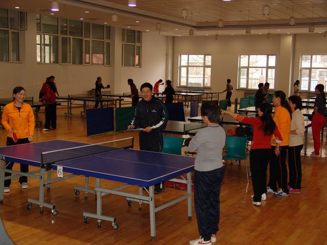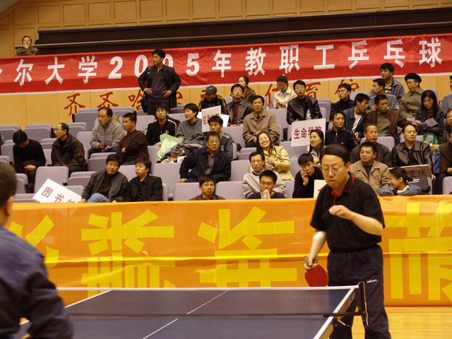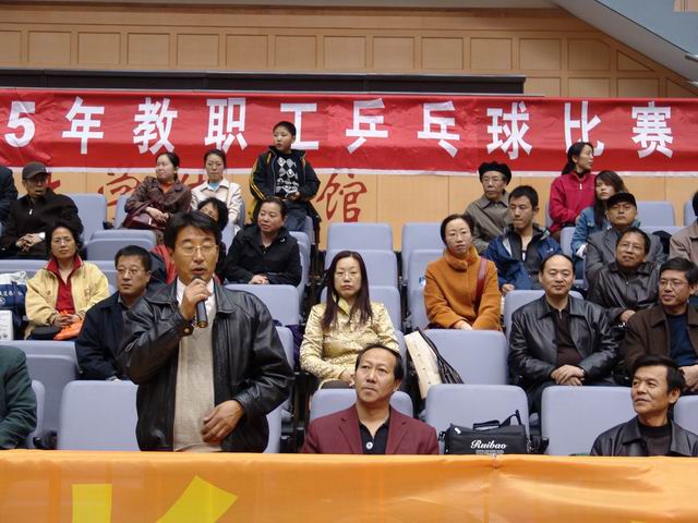 4月11日下午,由校工会主办、体育学院承办的2005年教职工乒乓球赛在校体育馆拉开帷幕。球赛开始前,举行了简短而热烈的开幕式,校工会副主席曲庆斌主持,校工会主席吕晓辉致开幕词。他说,这次教职工乒乓球赛是万象城教职工文体活动中的一件大事,希望教职工在参赛中比出水平、赛出风格,促进健康、增进友谊,各单位通过组织这项活动来更好地凝聚人心、鼓舞干劲,为学校改革与发展增添活力。教职工乒乓球赛裁判长、运动代表、裁判员代表也分别在开幕式上发了言。