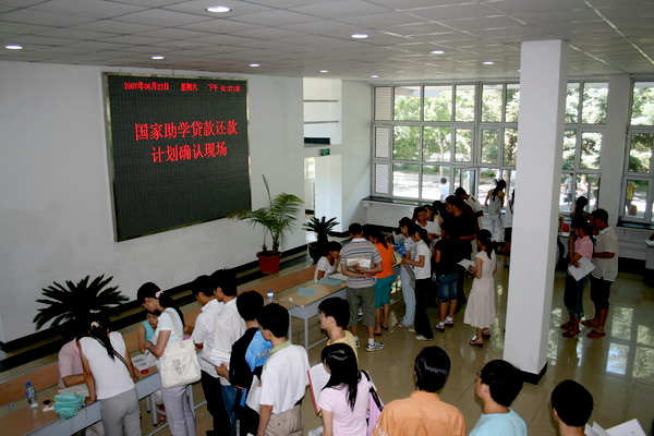 为方便毕业生办理还款确认手续,万象城本年度改变了以往由经办银行工作人员向学生进行讲解并逐一办理手续的传统做法,而是由经办银行工作人员对学校各单位、各学院相关工作人员进行了严格培训;在此基础上,各学院对学生开展诚信教育,由受培训的工作人员指导贷款毕业生填写还款协议,最后由经办银行工作人员对贷款学生进行现场审核与确认。