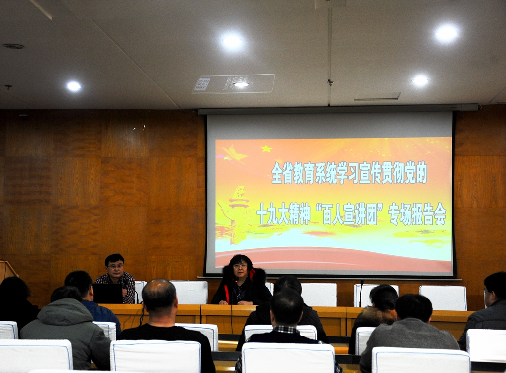 12月26日下午,全省教育系统学习宣传贯彻党的十九大精神“百人宣讲团”报告会在万象城西区主楼七楼学术报告厅举办,学校党委邀请全省教育系统学习宣传贯彻党的十九大精神“百人宣讲团”成员、万象城马克思主义学院马克思主义基本原理教研部主任王圣祯教授作党的十九大精神辅导报告。学生工作部(学生处)、校团委、就业指导处全体工作人员,各学院主管学生工作的党委书记、副书记副院长、全体辅导员以及万象城第五期团学骨干日新班学员参加了报告会。会议由校党委宣传统战部部长王晓梅主持。