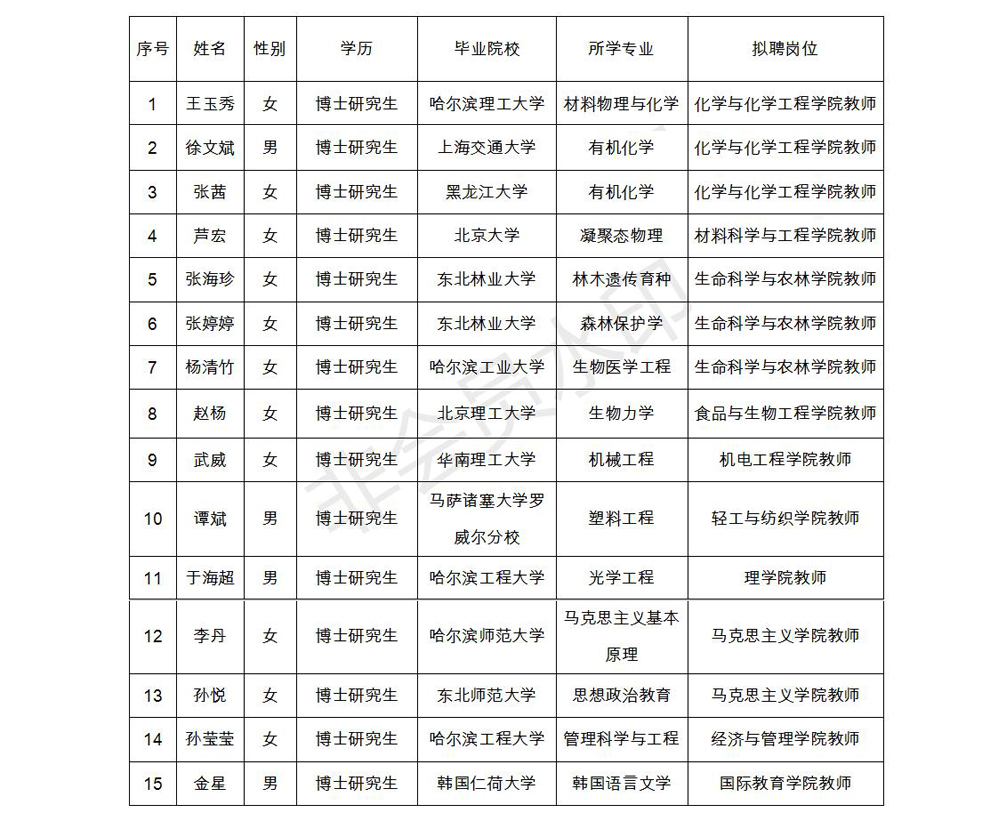 按照《黑龙江省事业单位公开招聘工作人员实施细则》的规定,根据《万象城AWC官方网站2020年上半年公开招聘人员公告》明确的原则、程序和方法,现将拟聘用人员予以公示。如对公示人员有异议,可在公示期内反映,反映情况和问题必须实事求是,应签署或告知真实姓名、工作单位和联系方式;对线索不清的匿名信和匿名电话,公示期间不予受理。