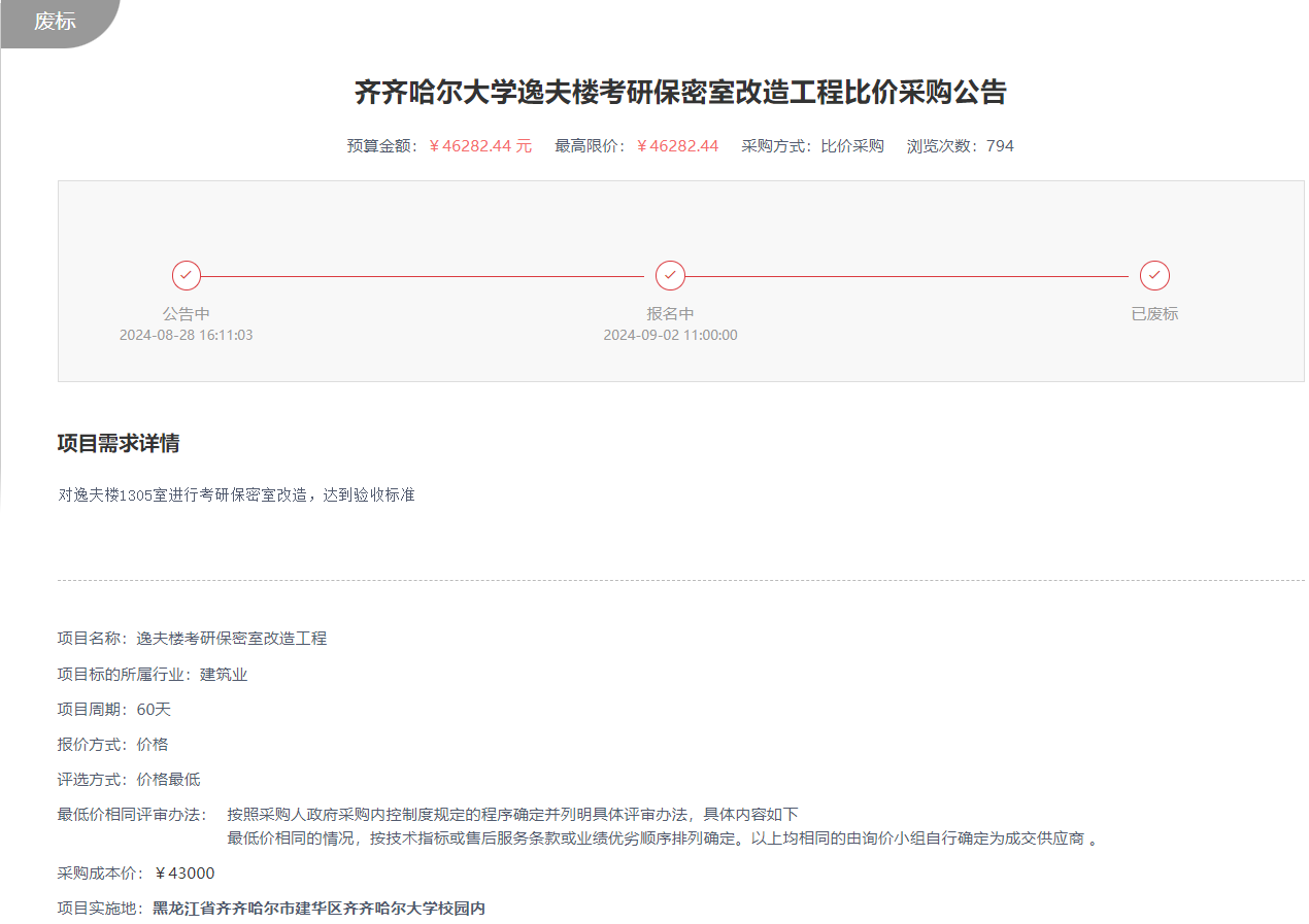 下一条:万象城AWC官方网站逸夫楼考研保密室改造工程比价采购公告(转自黑龙江省政府采购网)