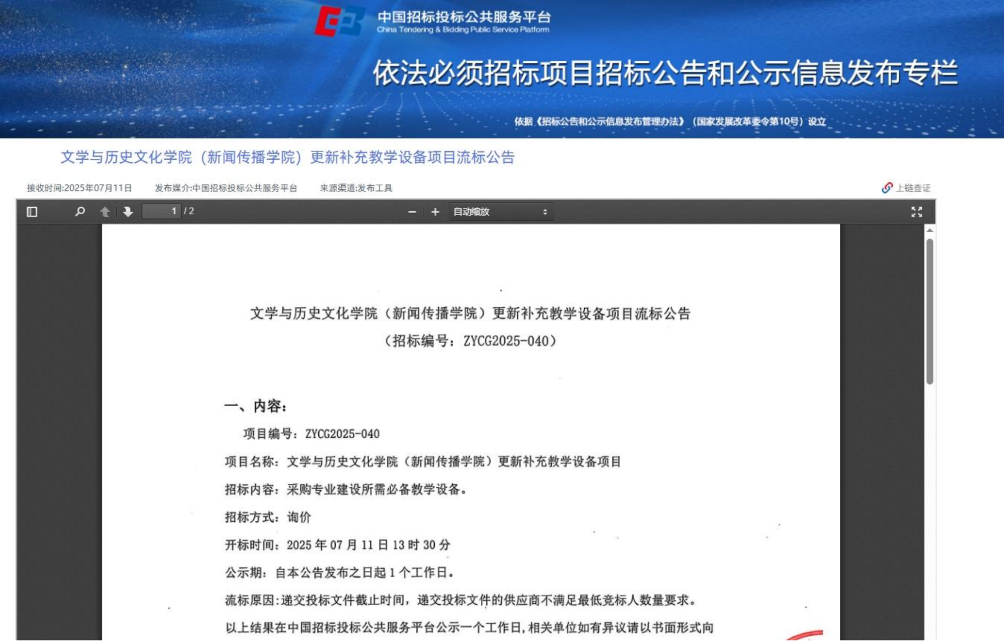 下一条:万象城AWC官方网站排污系统清掏服务采购项目(第2次)比价采购公告-废标公告(转自黑龙江省政府采购网)