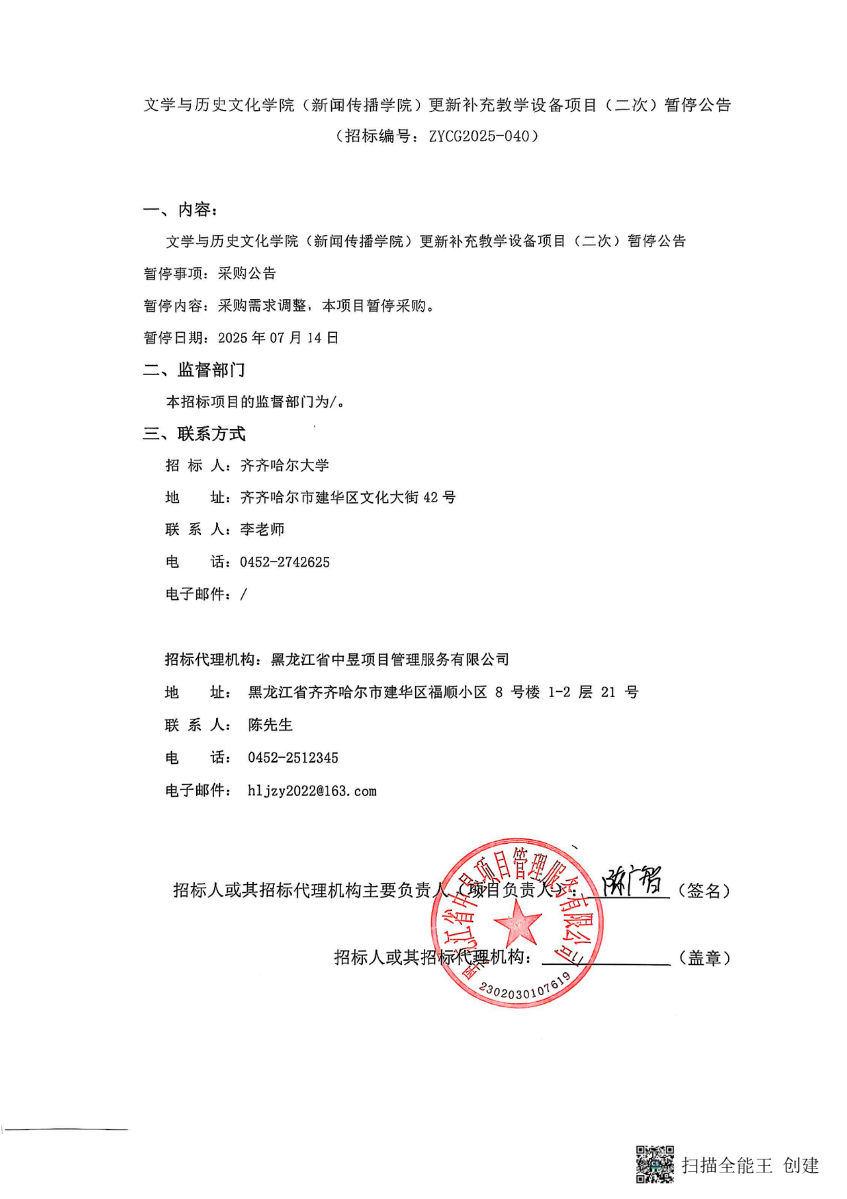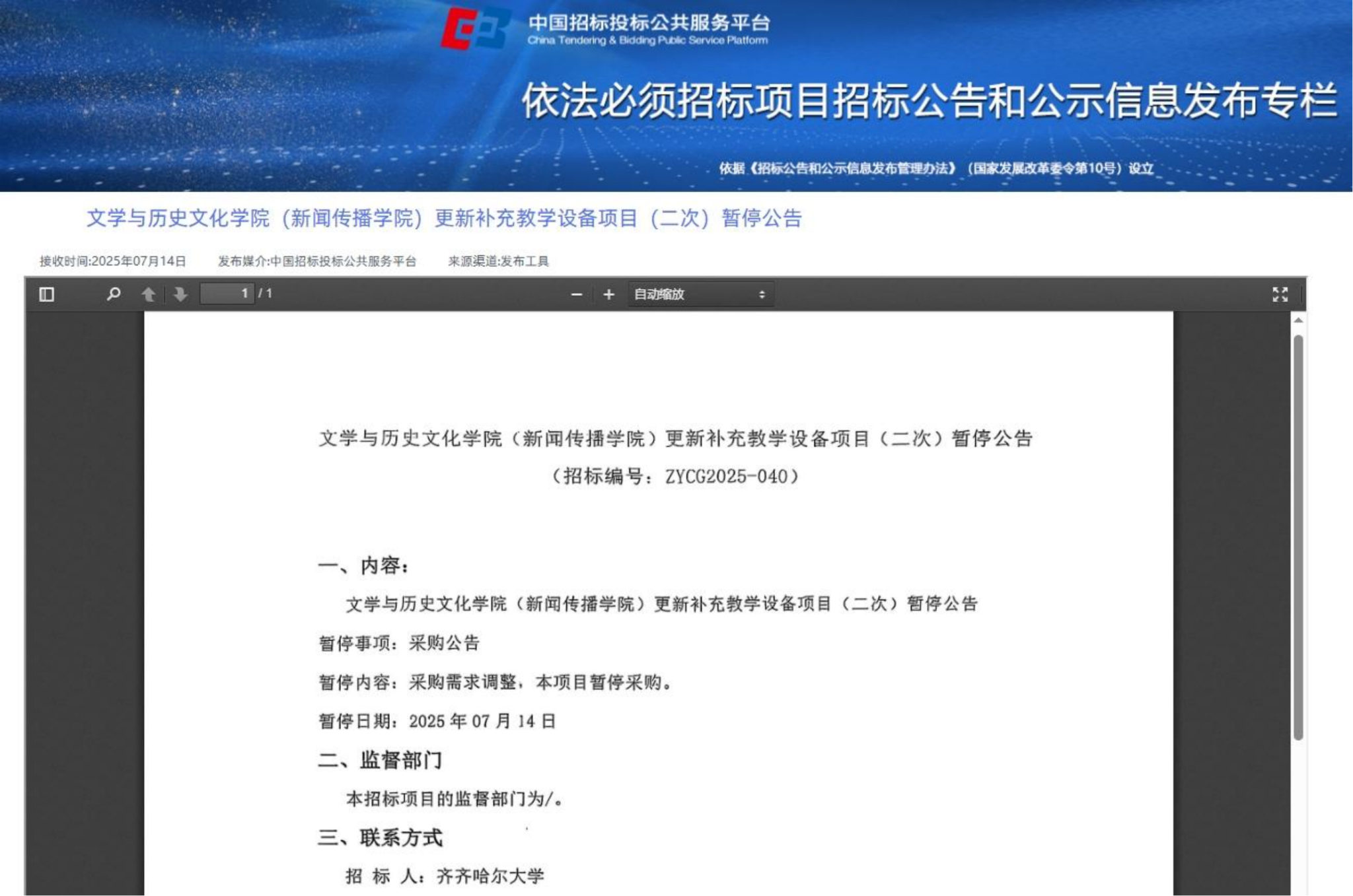下一条:文学与历史文化学院(新闻传播学院)更新补充教学设备项目(二次)询价通知书(转自中国招标投标公共服务平台)