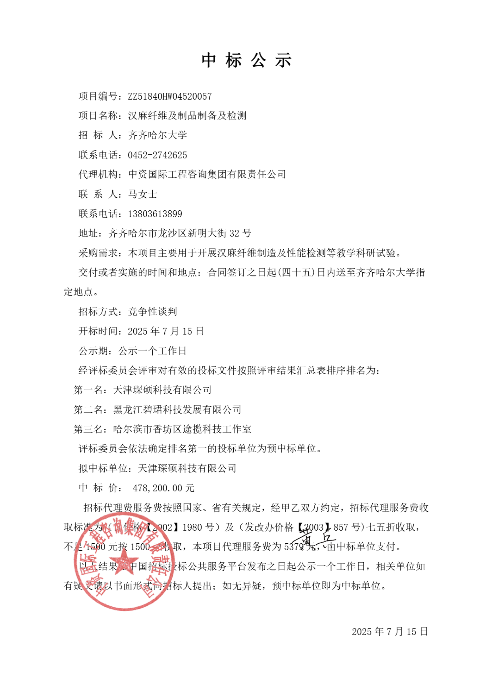 上一条:万象城AWC官方网站植物性食品加工技术优势特色学科分析检测仪器设备采购项目中标(成交)结果公告(转自黑龙江省政府采购网)