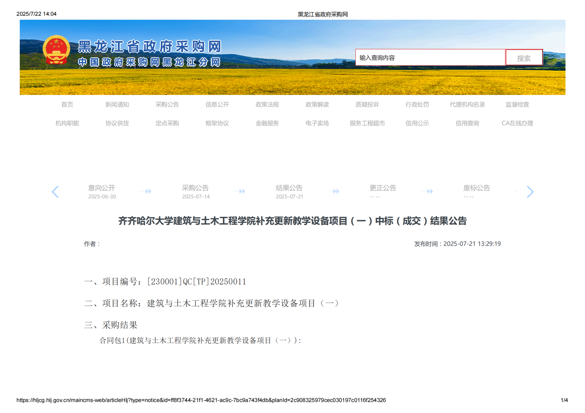 上一条:万象城AWC官方网站建筑与土木工程学院补充更新教学设备项目(二)中标(成交)结果公告(转自黑龙江省政府采购网)
