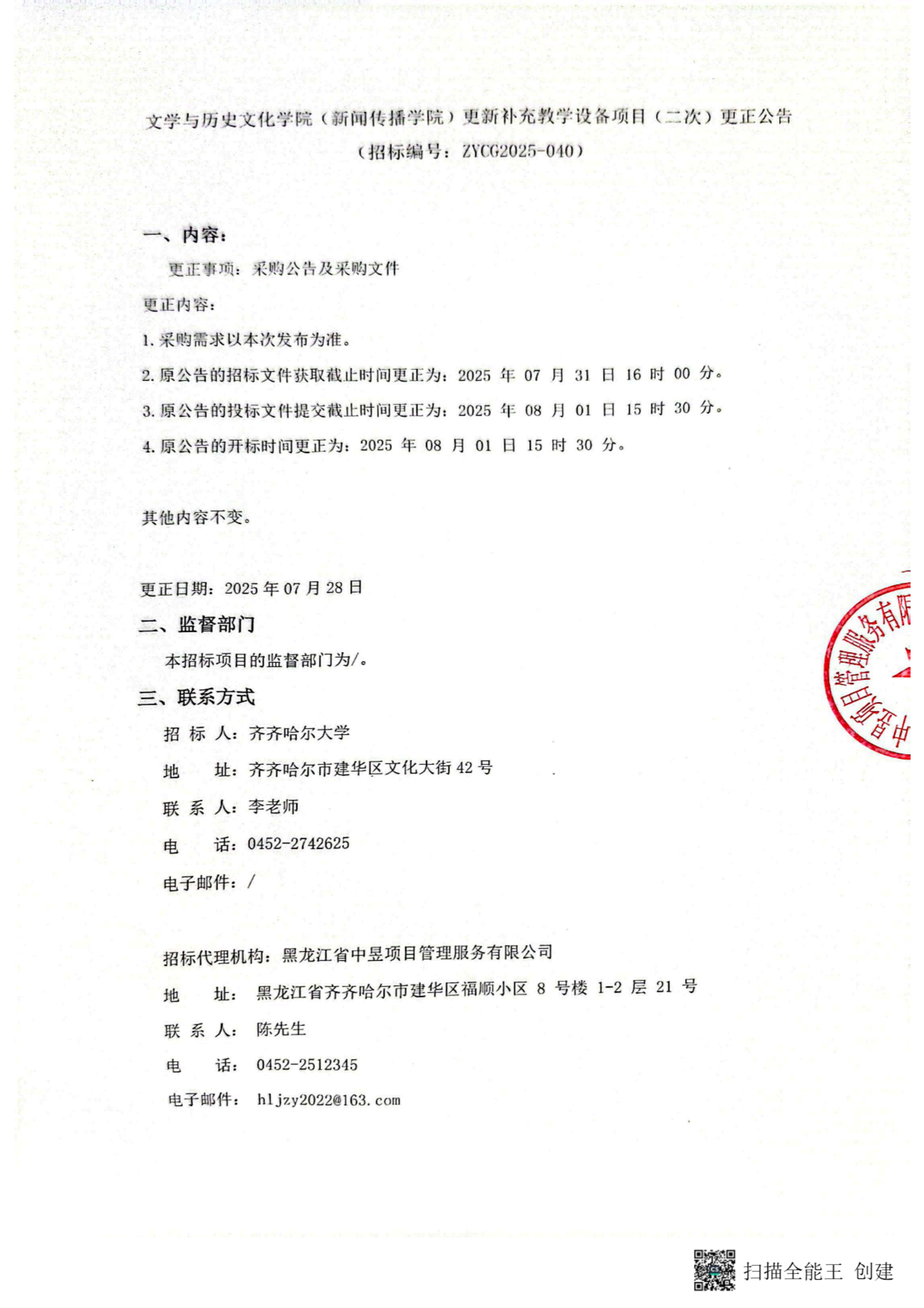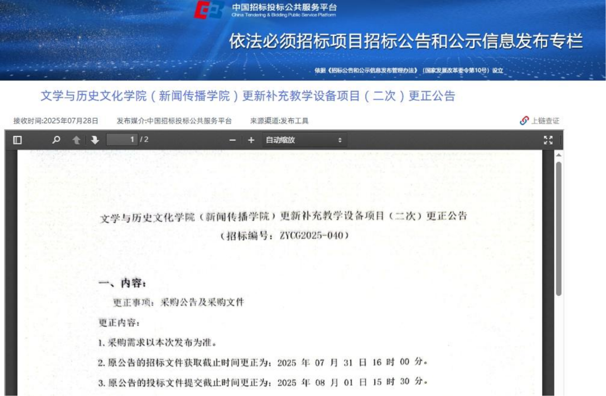 下一条:体育学院更新补充教学设备项目(二次)询价通知书(转自中国招标投标公共服务平台)