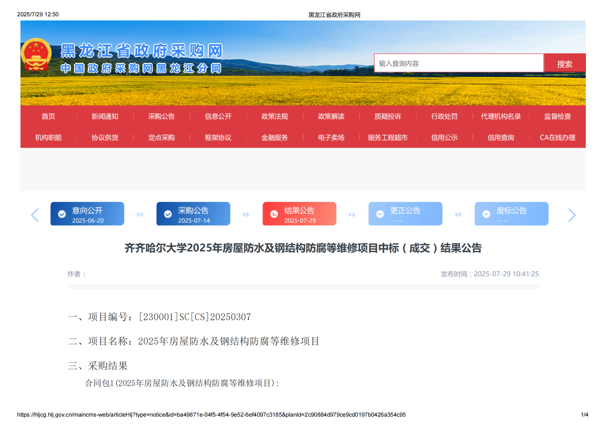 下一条:万象城AWC官方网站2025年房屋防水及钢结构防腐等维修项目中标(成交)结果公告(转自黑龙江省政府采购网)