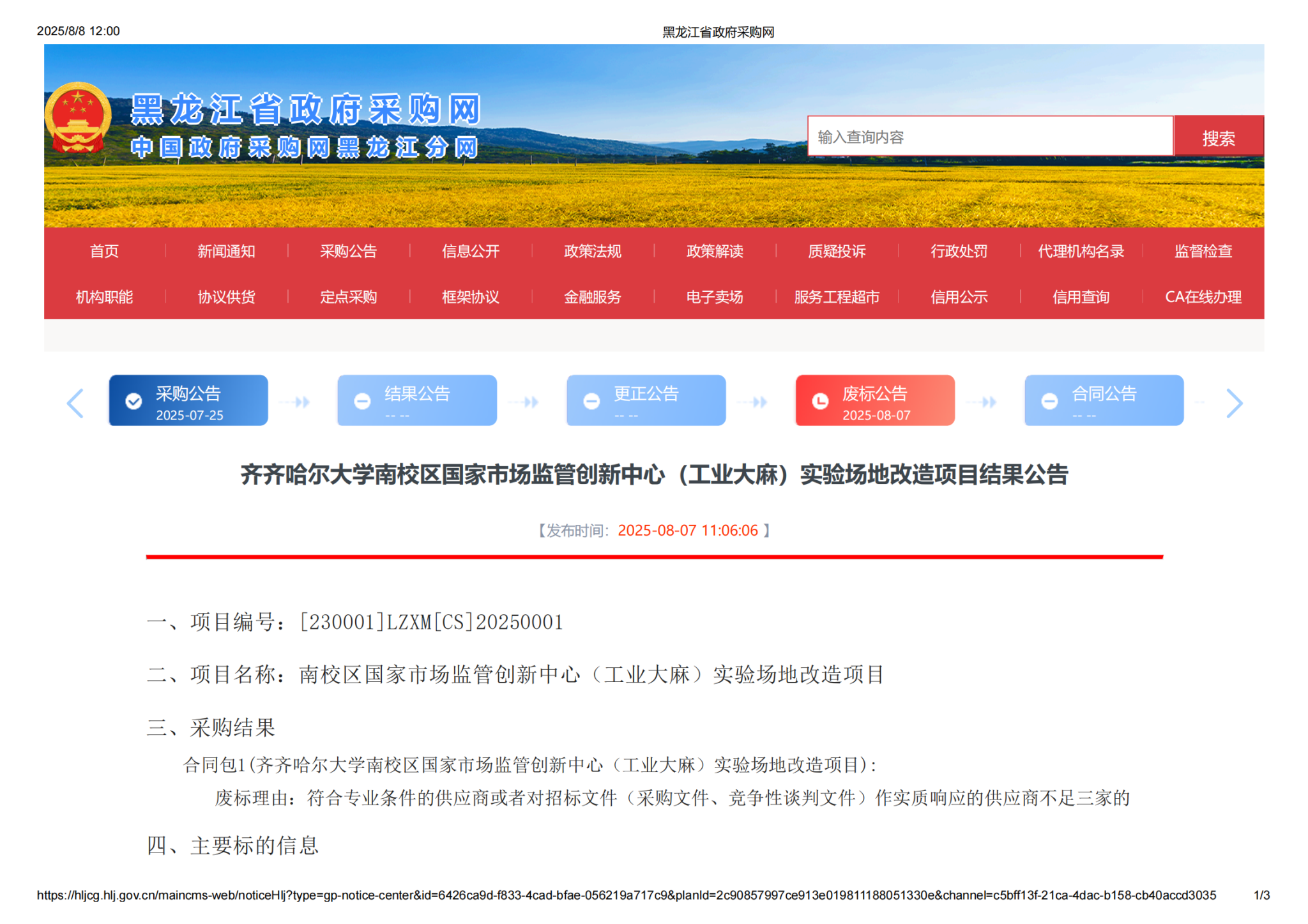 下一条:万象城AWC官方网站2025年校区急需维修项目竞争性谈判公告(转自黑龙江省政府采购网)