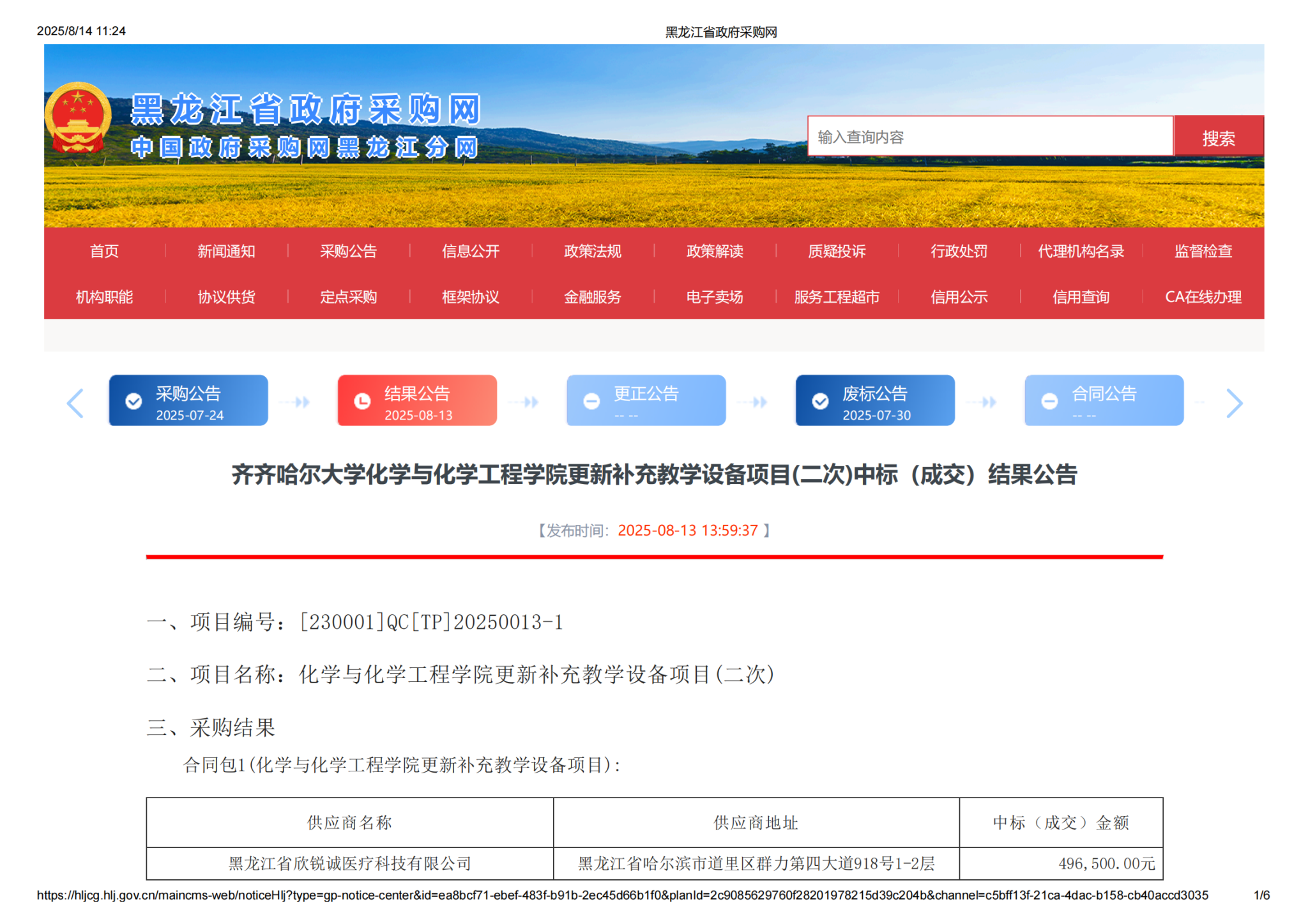 下一条:万象城AWC官方网站精密控温夹套玻璃过滤结晶工作站设备采购项目竞争性谈判公告(转自黑龙江省政府采购网)