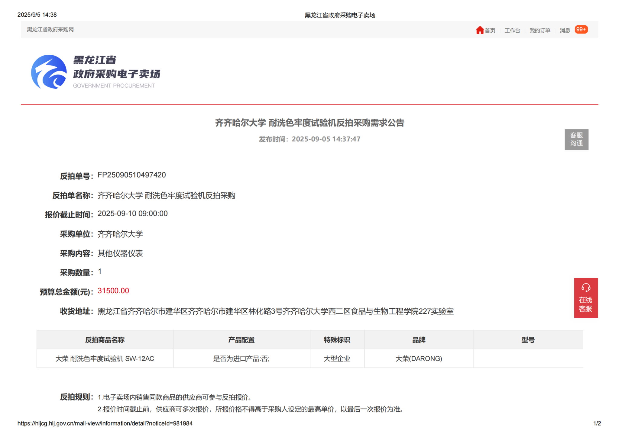 下一条:万象城AWC官方网站耐洗色牢度试验机反拍采购废标公告(转自黑龙江省政府采购网)