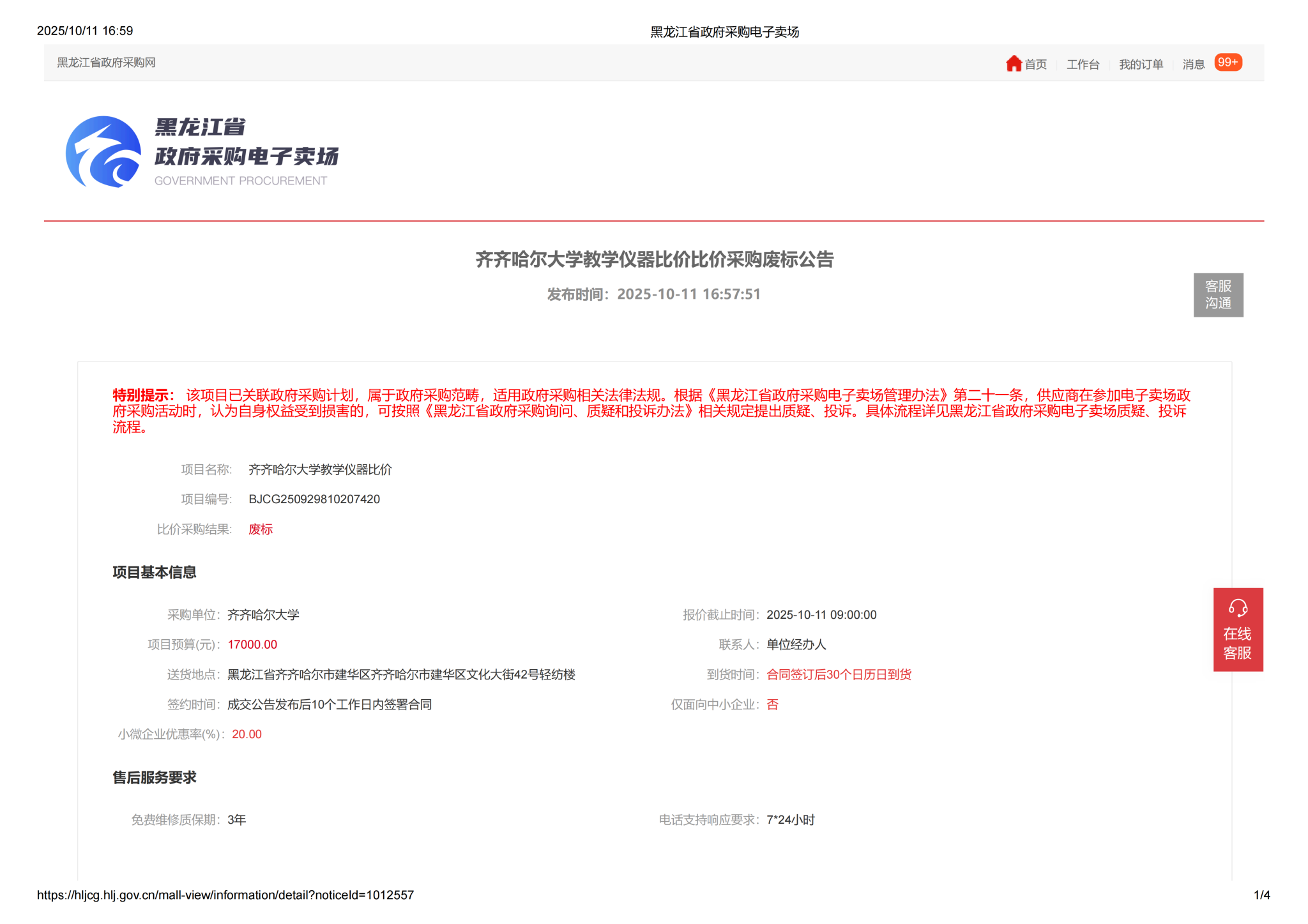 下一条:万象城AWC官方网站2025年校园路灯安装项目(第2次)比价采购公告(转自黑龙江省政府采购网)