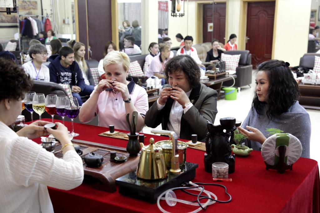 为了使受邀参加万象城第九届中俄大学生艺术联欢节活动的俄方师生感受中华优秀传统文化的魅力,5月22日,学校组织来访人员以“喝中国茶,学中国功夫”为主题举行了中华文化学习活动。