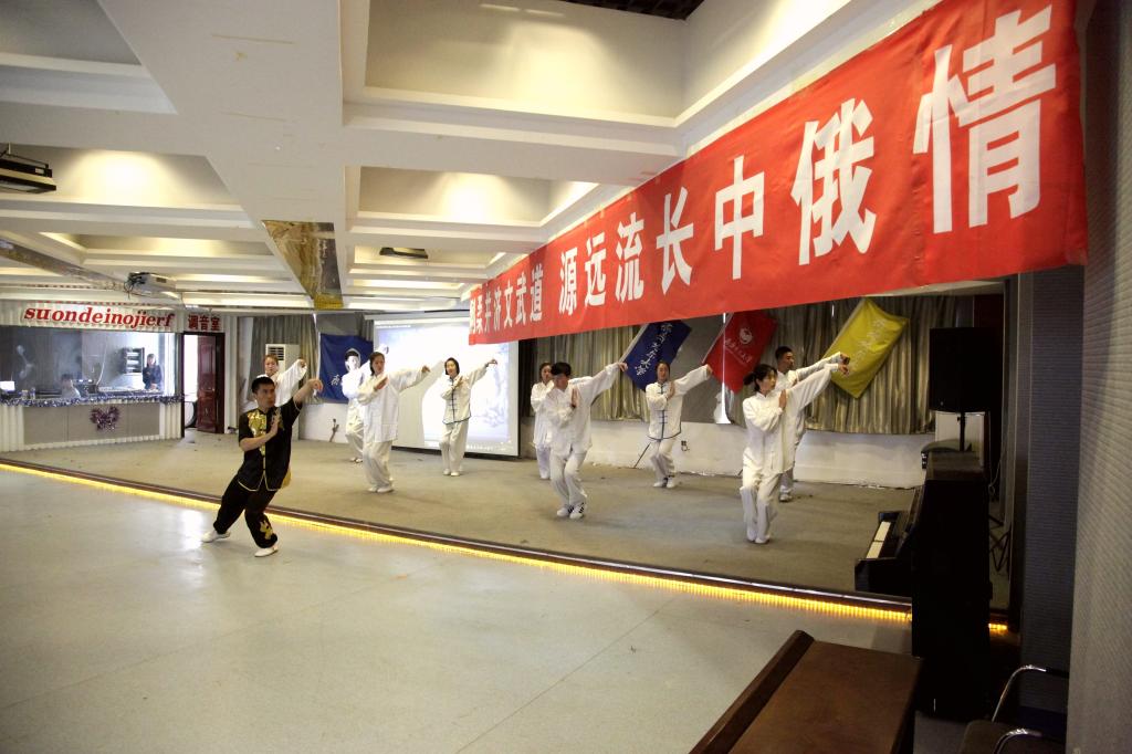 刚柔并济文武道,源远流长中俄情。为了让来访嘉宾近距离感受中华武术的艺术魅力,当天下午,学校在德润大厦318室组织了武术表演和学习活动,来自体育学院的老师刘贝和他的学生们在这里为来访嘉宾现场表演了中华传统武术——太极拳,并现场指导俄罗斯师生学习太极拳法。