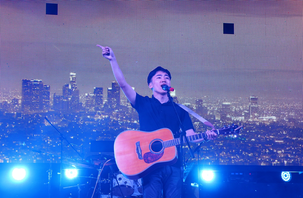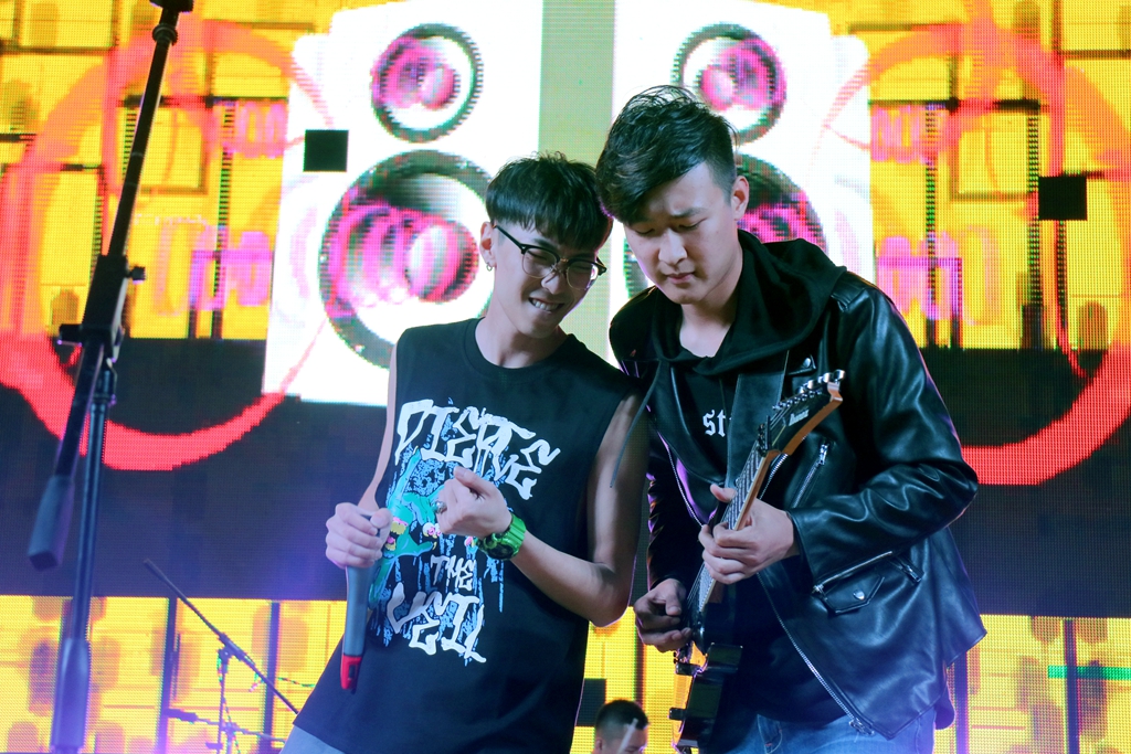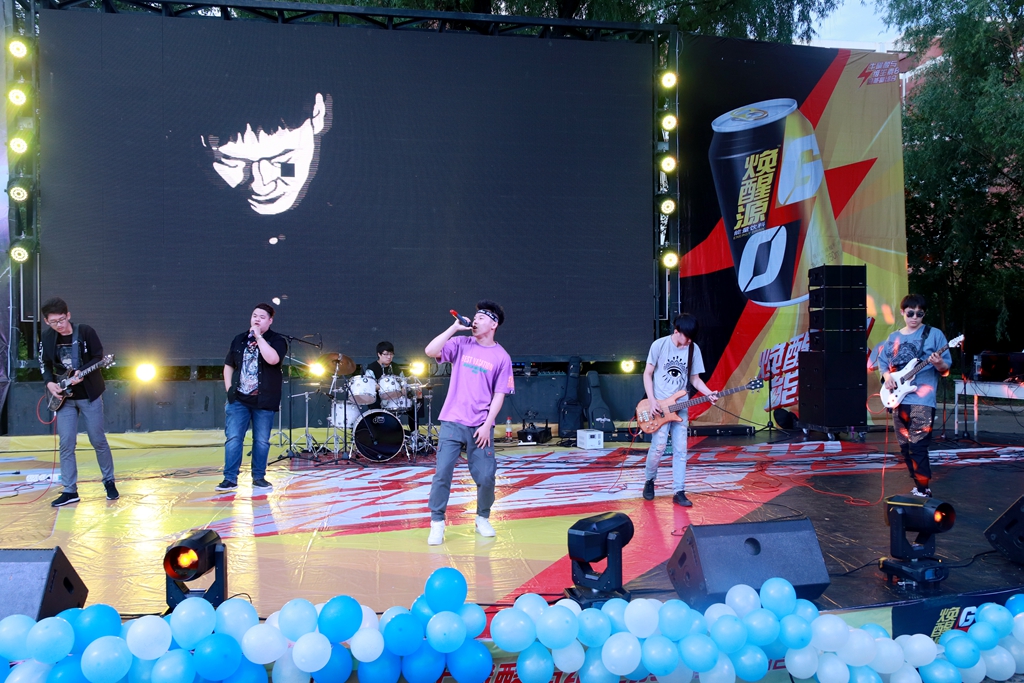 首先闪亮登场的是工建路46号乐队,在灯光闪耀下6位摇滚的少年嗨唱着自己的态度。舞台上他们迸发着青春、斗志昂扬、永不低头,仿佛整个广场上的空气都被他们点燃,彩灯照耀着的全是他们的不羁。《阳光宅男》高亢跳跃,“让我们乘着阳光,海上冲浪!”他们的跳跃带着微笑,微笑时主唱脸上的酒窝好像可以甜化人的心房,今夜台上的“阳光宅男”比音符更加闪亮。紧接着一首数码宝贝的主题曲《butterfly》,妥妥的回忆杀,藏在童年心底的“八神太一”和“亚古兽”立刻被这首歌唤醒,在三致广场上再次登场。《Something’s going on》带着强烈的鼓点,即使是最后一首歌却依然抓耳,为他们的今晚表演画上完美的句号。今天的“公建路46号”乐队非常帅!