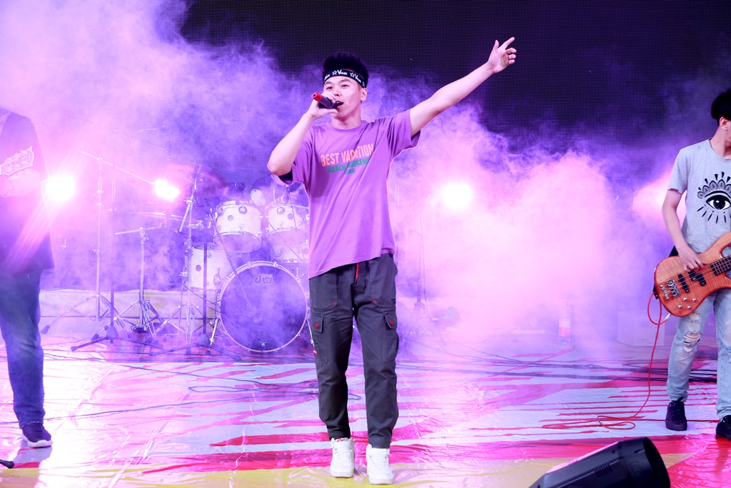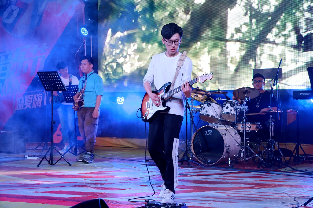 游戏过后,一段小清新的的VCR照亮了些许擦黑的天空,短片的主角——磐石乐队与千思宇同学带着一首《辛德瑞拉》甜蜜的登场,灰姑娘蜂蜜般的微笑被他们唱成了曲,融化了黑夜的寂寥;鼓点轻俏,就似辛德瑞拉穿着的水晶鞋宽宽走来。“怎么会爱上了她,并决定跟她回家,放弃了我的所有我的一切无所谓。”由磐石乐队许可同学带来现场版的《纸短情长》,伴着紫色的灯光、糖果色的追光,走进了现场男男女女的心房,“我们的故事都是关于你啊”,今夜的故事也由你们写下。听完了几首甜丝丝的歌曲,不妨换换口味。由景泽同学与磐石乐队带来的《东北人都是活雷锋》为今晚的音乐节带来一丝诙谐与幽默。今晚的磐石不光坚硬,还带着一丝丝甜蜜。期待着磐石再度为我们带来不一样的摇滚与激情。