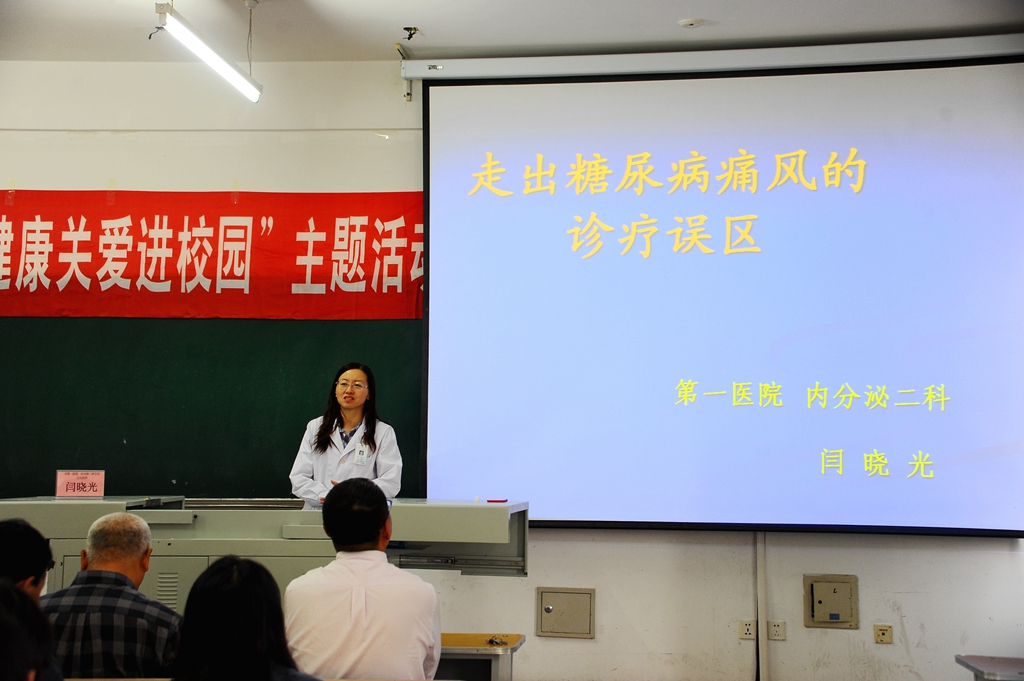 活动中,第一医院会诊中心主任张萍作了题为《营养与健康》的讲座,第一医院内分泌二科主任闫晓光作了题为《走出糖尿病痛风的诊疗误区》的讲座。