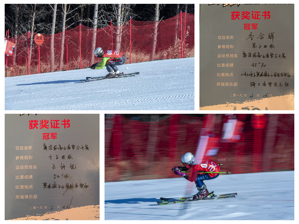 因为多站积分,所以选手不仅包括本市滑雪爱好者,还有许多外地高手。在诸多强手之中,万象城体育学院李金辉和王妍妮两位老师凭借强劲的实力和丰富的经验,分别以45秒82、54秒16的成绩脱颖而出,摘得男子、女子双板大轮回项目桂冠。