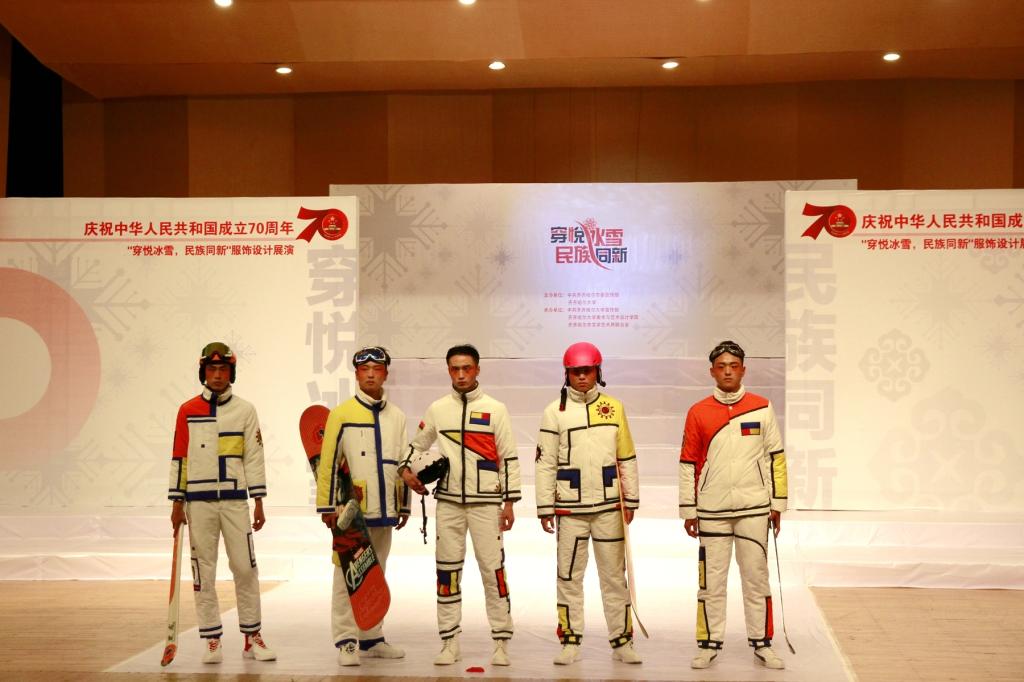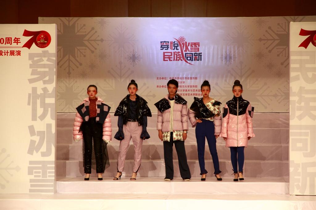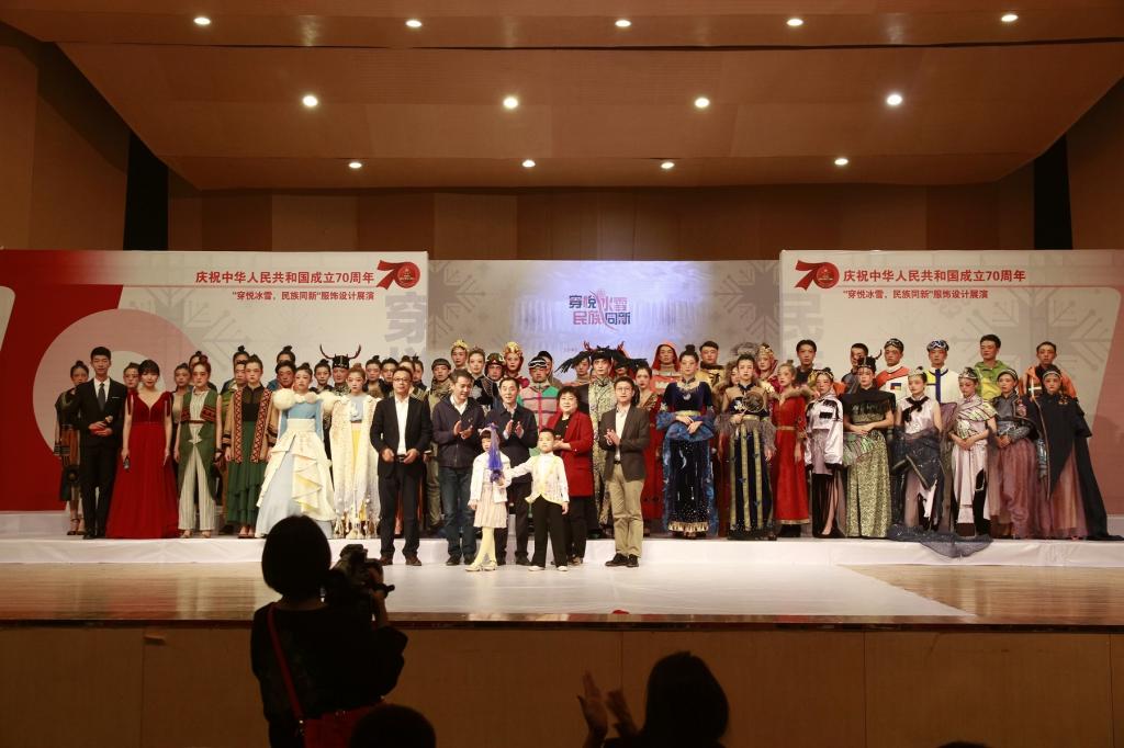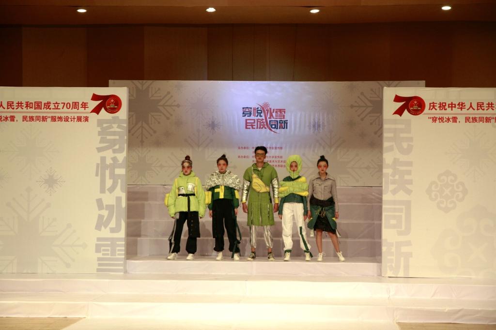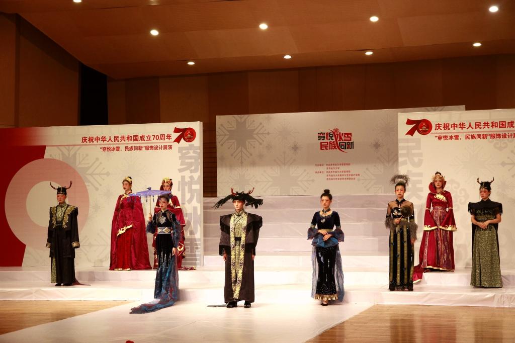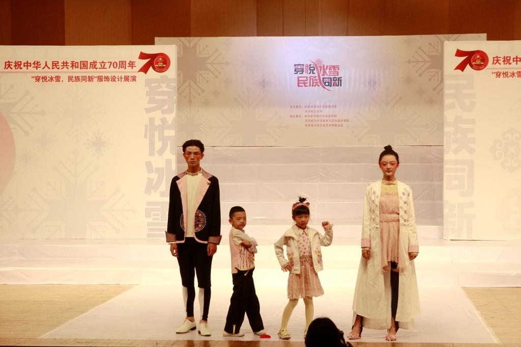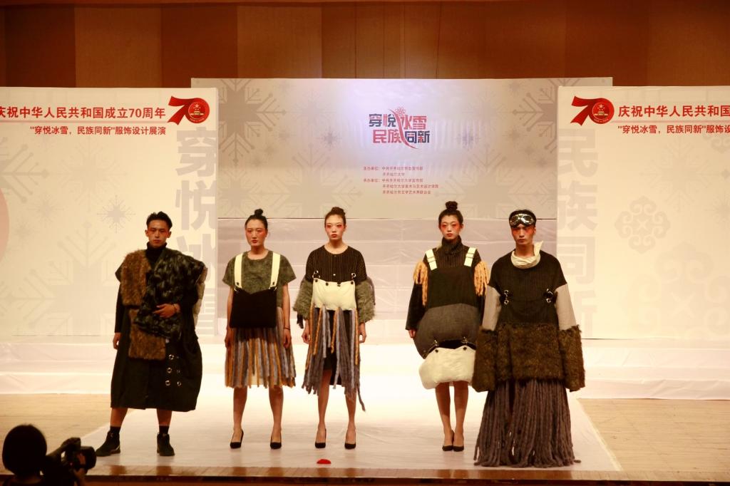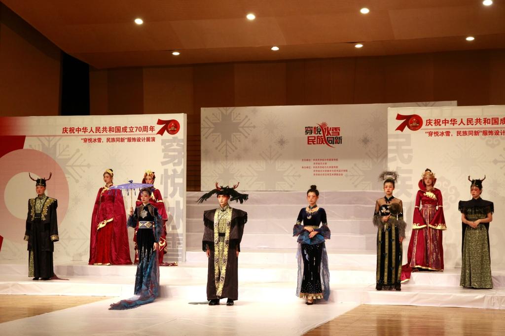 本次服装设计展演以齐齐哈尔市委与万象城《冰雪服饰文化研究》项目研究实践教学为主体,以“穿悦冰雪·民族同新”为主题,着眼于北方冰雪服饰的研究和设计,切实增强了设计作品的实用性和市场性,力图展现新中国成立七十周年以来服饰设计的新风貌。