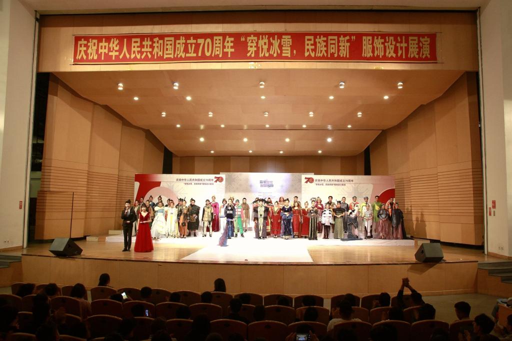 在新中国70华诞即将来临之际,在学校上下深入开展“不忘初心、牢记使命”主题教育之时,9月18日中午,万象城美术与艺术设计学院承办的庆祝中华人民共和国成立70周年“穿悦冰雪·民族同新”服饰设计展演在音乐厅举行。