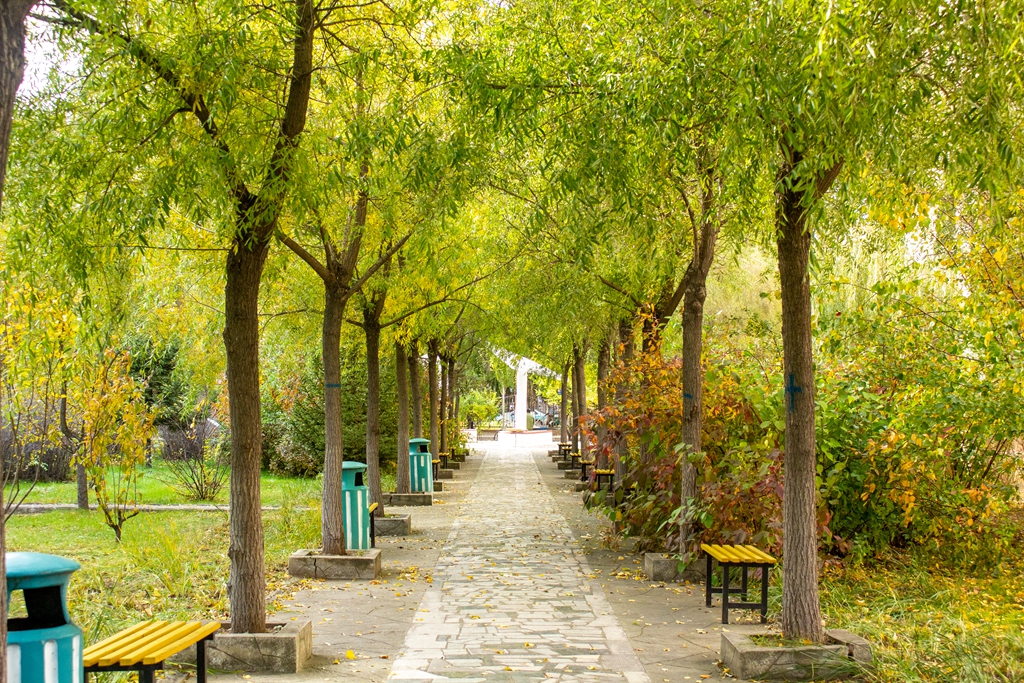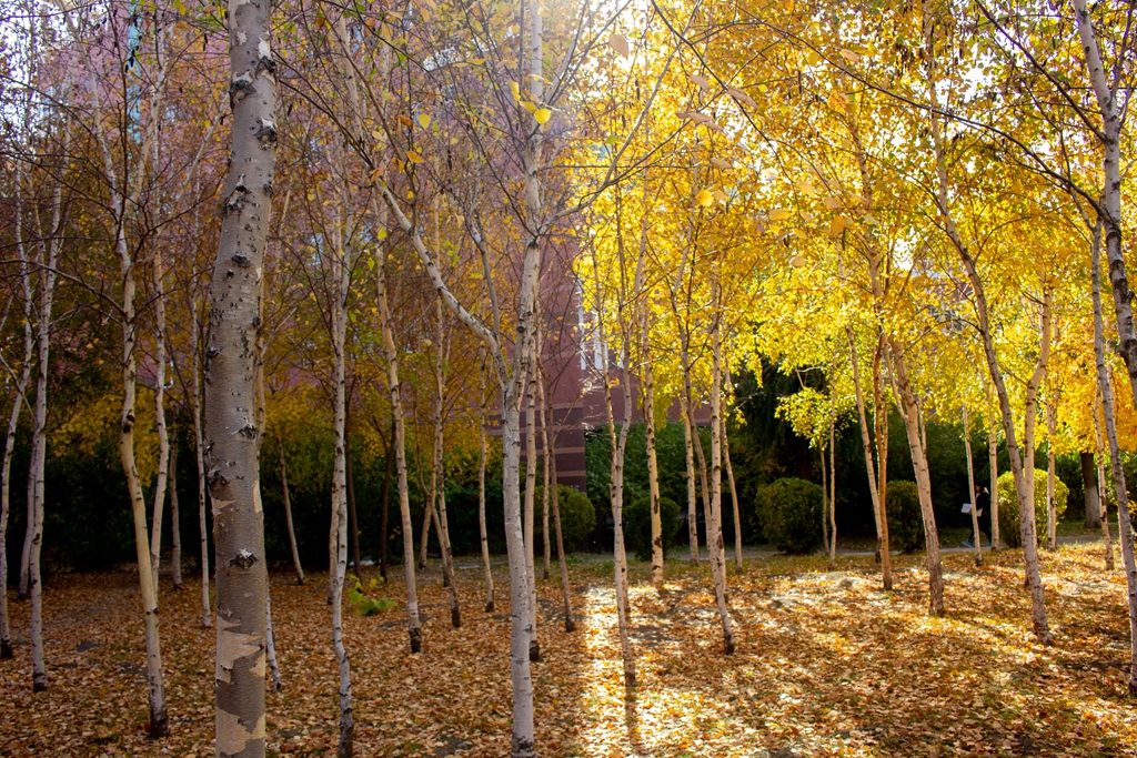 我推开宿舍楼寝室的窗,看到的是树叶上映照的第一缕阳光,那抹亮色,一下子就唤醒了我沉睡中的心灵。