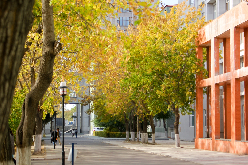 她是最浪漫的,若是谁有闲情雅致可以晚上到人文楼下一观,九点刚过,人文楼上的灯就会从六楼往下开始一间间的变黑,直到一楼最后一间教室,那是保安大爷“赶人”的成果,一群被“赶”出来的学子,就都拖着早已经疲惫的身躯和书本,在路灯下慢慢前行,不远处的大钟静静的矗立着,静谧的校园有着她独有的安静与浪漫。我与闺蜜们走在路上谈笑风生,虽然疲惫但眼睛里都透着光,喋喋不休的说着明天的计划。我们从来都不担心夜路的可怕,齐大晚上的路灯从来没有坏过,细心、周到的她总是早早就为我们修好一切,那路灯下长长的影子,一直是我头脑中挥之不去的倩影。