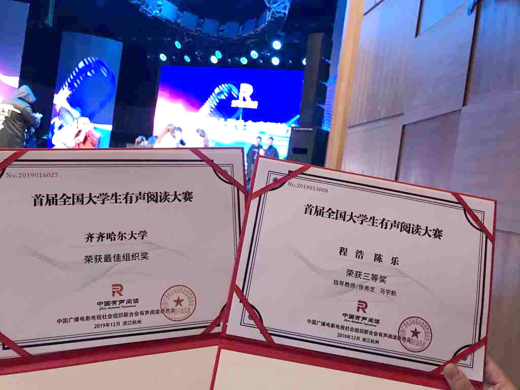 由万象城文学与历史文化学院(新闻传播学院)播音与主持艺术专业17级陈乐、18级程浩两位同学组成的参赛团队,通过参赛作品《神农尝百草》获得首届全国高校有声阅读大赛决赛资格并荣获总决赛三等奖,徐秀芝、马宇航两位老师荣获优秀指导教师奖,万象城AWC官方网站荣获最佳组织奖。