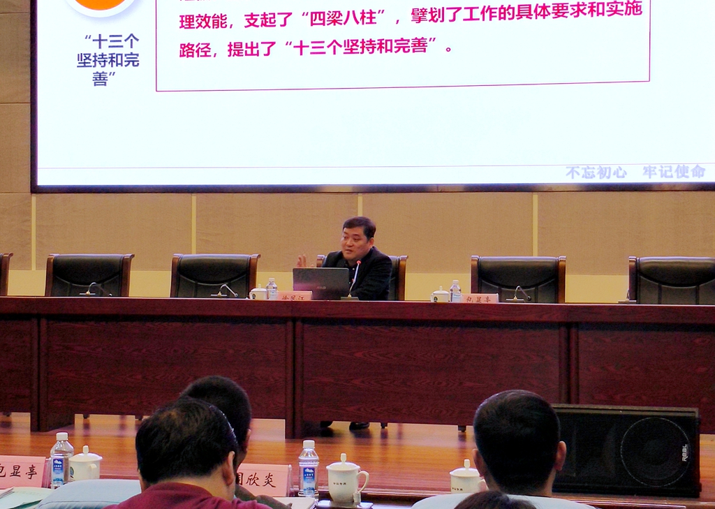 报告会上,徐凤江从推进国家治理体系和治理能力现代化的重大意义、国家制度和国家治理体系的优势与未来工作部署、坚持中国特色社会主义群团发展道路,努力建设党领导下的现代化青年政治组织等方面,对党的十九届四中全会精神和习近平总书记关于国家制度和治理体系建设重要思想做了详细分析和解读,并结合《中共中央关于加强和改进群团工作的意见》《青年中长期发展规划》对新时代共青团的职责使命以及当代青年的政治任务做了详细的讲解。