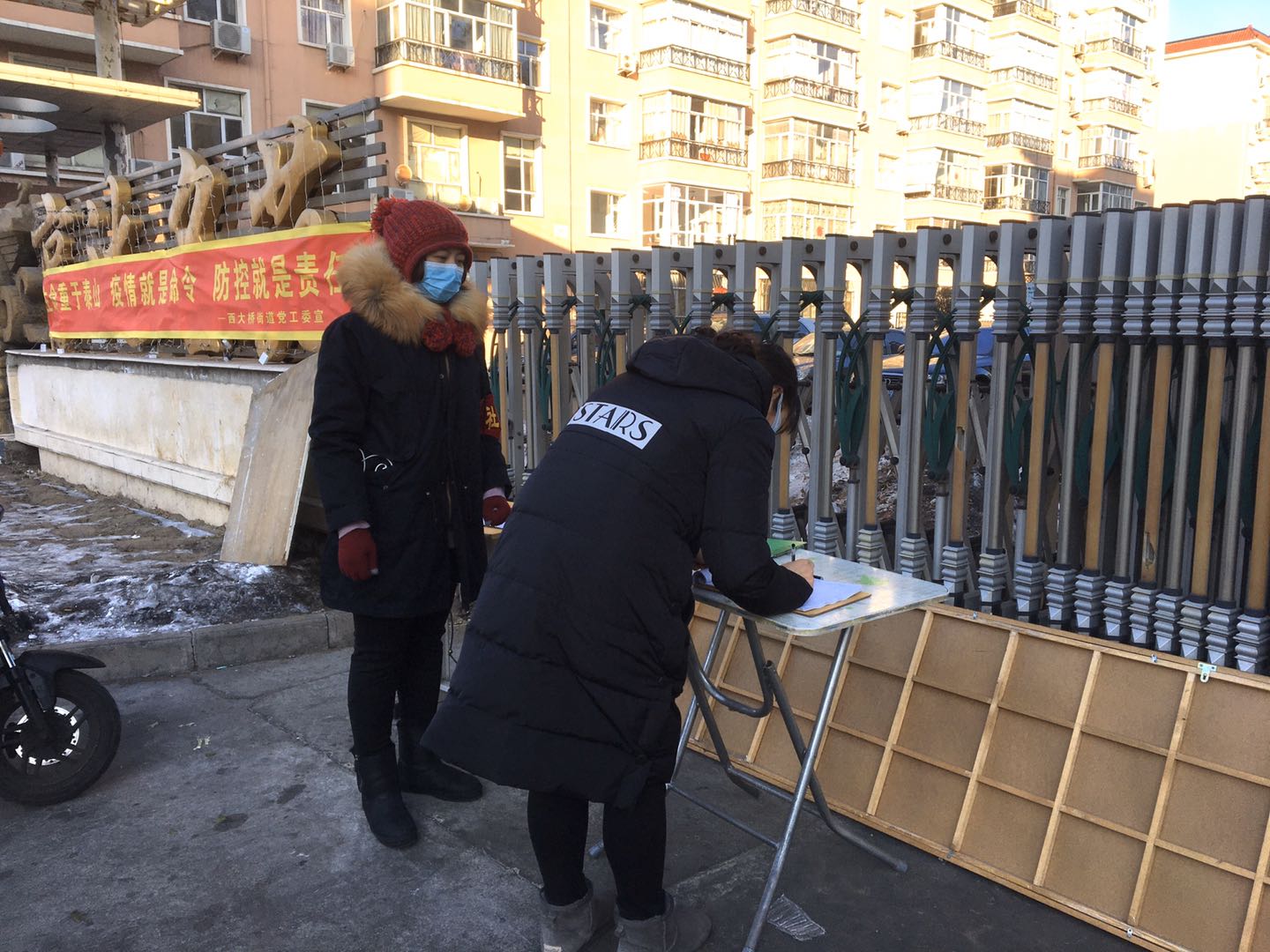 2020年2月7日,在亨达名苑小区物业人员紧缺的情况下,居住在该小区的万象城AWC官方网站教务处教务科共产党员杜楠楠和保卫处防火科共产党员张磊两位同志,第一时间报名,参与到亨达名苑小区的疫情防控工作中,对进出小区车辆、人员信息查询登记,对小区居民进行体温监测、防疫知识宣传等工作,主动准备了纸、笔和垫板等物品方便大家使用,工作认真细致,不漏一人。杜楠楠说:“疫情就是命令,执行就是担当。作为一名党员干部,我用实际行动践行党的宗旨,助力防控疫情斗争,为社区服务是我义不容辞的责任。”杜楠楠和张磊两位同志还自备消毒用品每天义务为楼道和门把手消毒。在小区业主群里,积极宣传疫情防控知识,及时转发官方消息,引导大家不造谣、不信谣、不传谣,疫情面前,理性对待,受到小区居民的认可和好评。