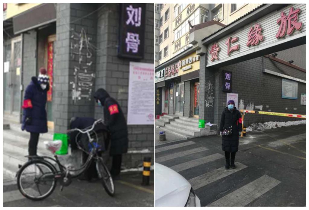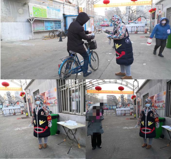“我的本职工作就是教书育人,在重大疫情面前,我作为教师,作为党员,应该为我的学生树立榜样,初心使命不是说出来的,而是真刀真枪干出来的,这些都是我应该做的”。2月7日,马克思主义学院教师高学军报名参加了由齐齐哈尔市建华区王仔花苑临时社区党委组成的党员志愿队,上图是她第一次值岗被安排在解放门医院的坤顺小区协助防疫值班的情景。她每隔2至3天就会轮一次岗,主要负责为出入小区人员进行体温测量、出入信息登记等工作。
