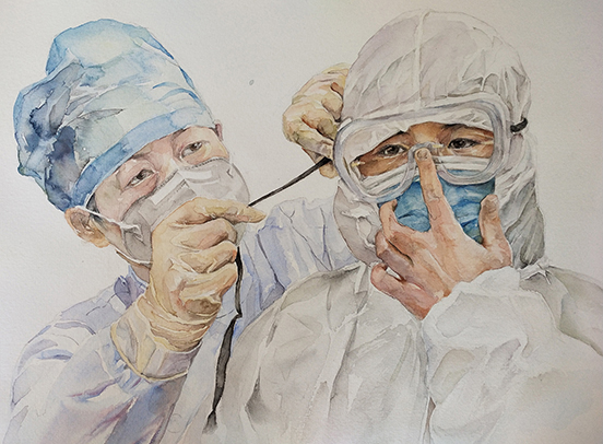 《向白衣天使致敬》水彩 李静萍