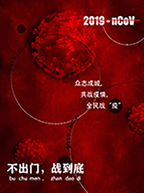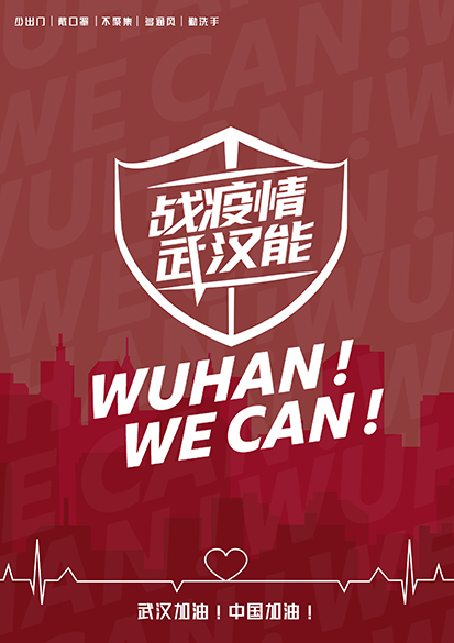 设计简介:运用几何图形组成一个抽象的武汉字体为中心,画面纹理设计有如战场一般的视觉感受,红和蓝相融合的背景代表着火与雷电,寓意着战胜疫情。