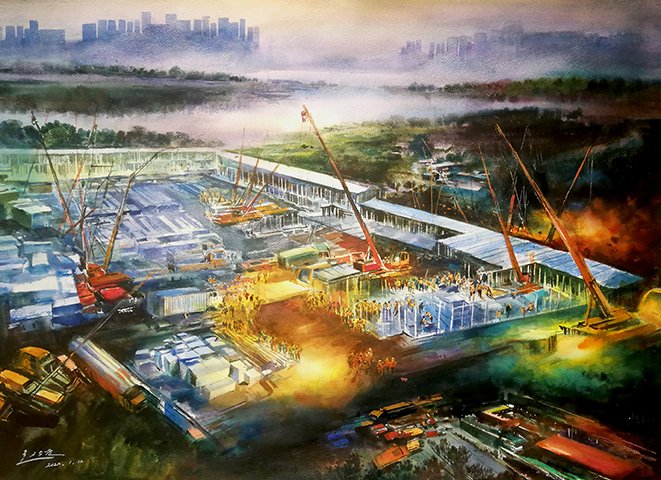 《火神山战疫》水彩 赵占元