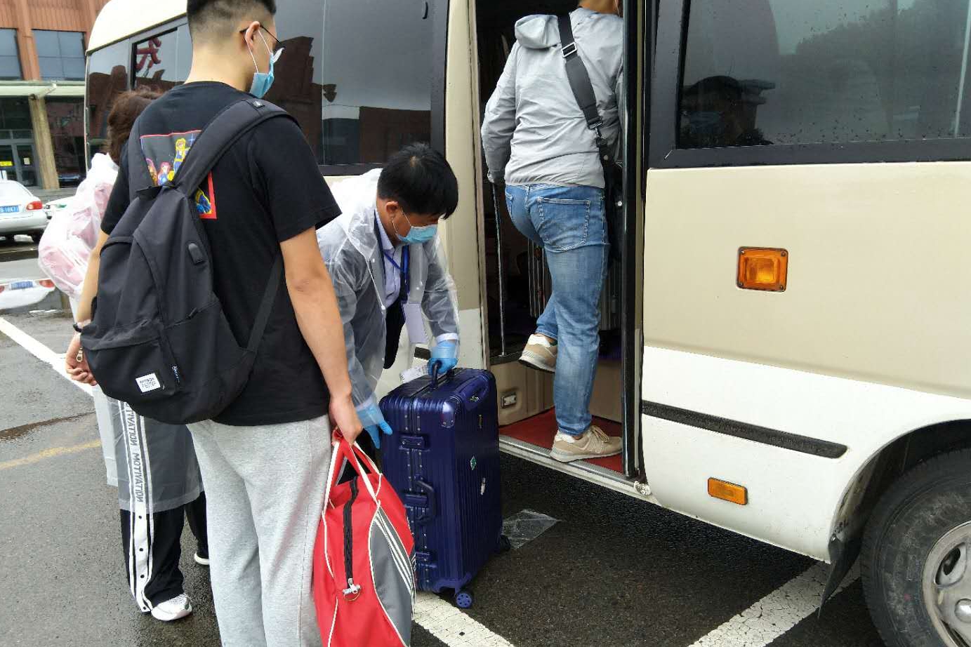 党旗高扬,引领前进方向;殷殷嘱托,化为不竭动力。机电工程学院机械173班的张乘翥,家住内蒙古赤峰市,是首批最早返校的学生,他感慨地说:“一下车接站老师就给我披上了雨衣,感觉很温暖。希望其他返校同学都能遵守学校规定,做好自我防护,服从管理分配,保障自身安全。”“终于回到环湖校园,感到很开心。早上天刚蒙蒙亮,火车就到站了,老师已经早早等候接站,心里很感动。今后我要在校园里更加努力学习,做正能量的坚守者,乐观积极地应对疫情,严格做好自我防护,与老师同学一起努力守护校园一方净土。”食品与生物工程学院返校研究生张以超说。