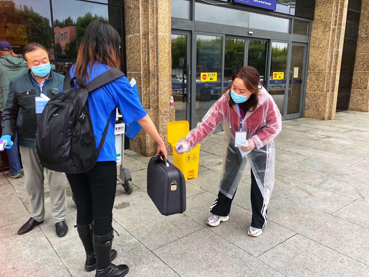 “欢迎回家!”“箱子沉,我来帮你拿。”在齐齐哈尔民用机场,刚下飞机的返校学生还没有感受到秋雨的寒凉,就穿上了机关党员服务队老师们送来的雨衣,收到了学校为返校学生精心准备的爱心早餐包和医疗健康包,感受到了学校对返校学生身心健康的关心重视与浓情关怀。