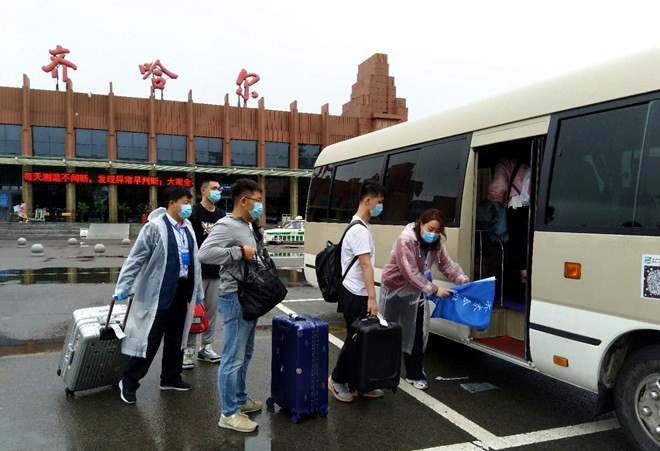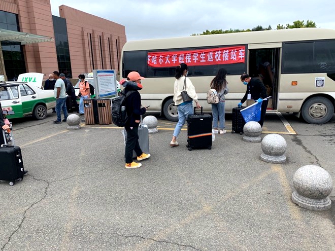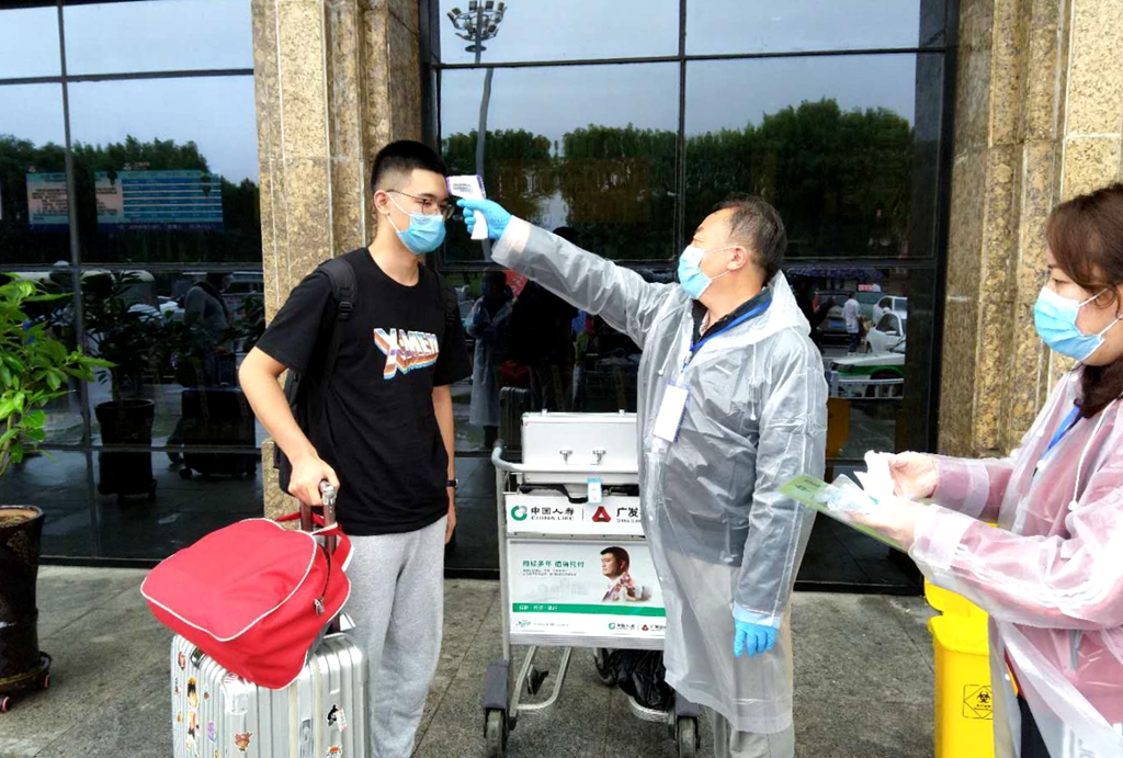 冲锋在前,当好“服务员”。“欢迎回家!”“箱子沉,我来帮你拿。”在齐齐哈尔民用机场,刚下飞机的返校学生还没有感受到秋雨的寒凉,就感受到了学校对返校学生身心健康的关心重视与浓情关怀。为做好机场接机工作,机关党委对齐市机场返校的学生到站时间、航班班次和本人联系方式等,与各学院进行了进一步核对,做到精准服务,确保不漏接一个学生。在机场,党员干部志愿者和校医一起为学生测量体温、进行消毒、更换口罩,核对学生身份信息和完美校园扫码信息,保证学生安全返回学校。