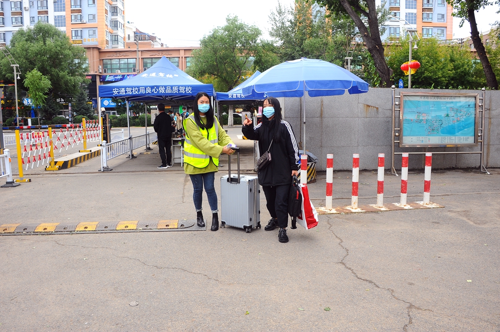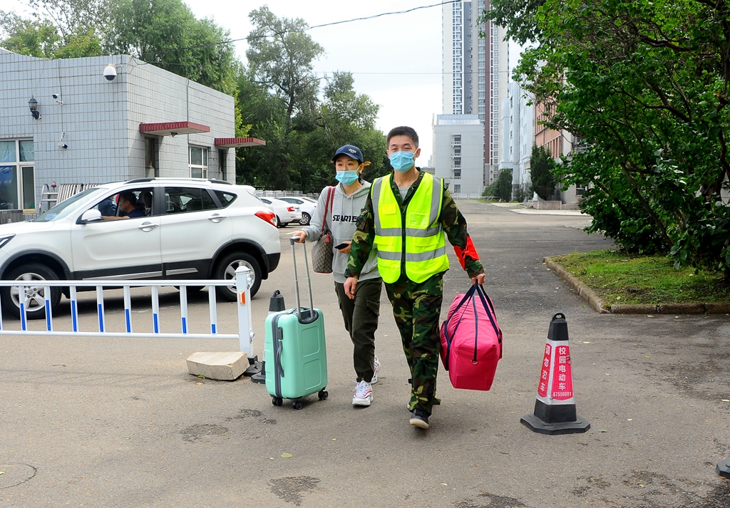 5日早上,首批返校学生志愿者们从7:30开始全部进入工作状态,在每个学院的接待点都能看到他们忙碌的身影。其中,由退役大学生士兵们组成的志愿服务队伍统一身穿“绿马甲”,有序地开展志愿服务工作,及时做好第二批返校报到同学的扫码测温、方向指引、行李搬运和沟通协调等工作,“绿马甲”们忙碌的身影穿梭在中区西门和东区北门两个入口,成为万象城第二批返校同学报到期间校园中的一道亮丽的风景线。