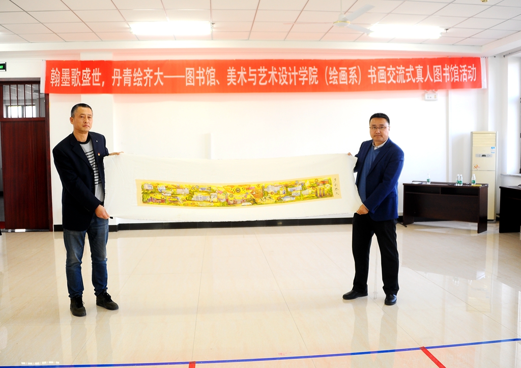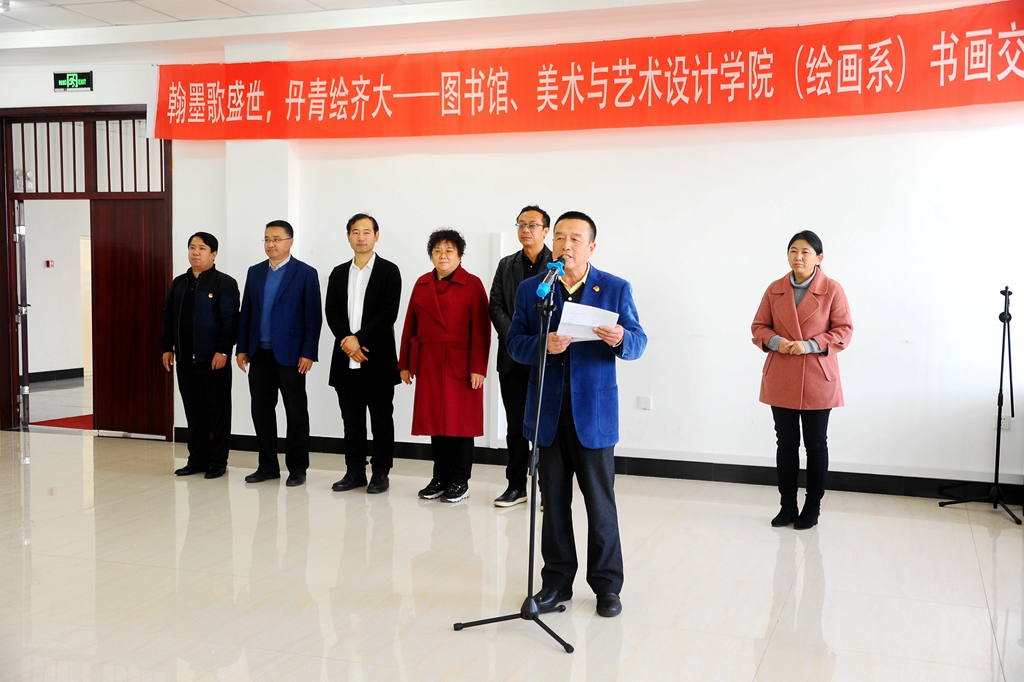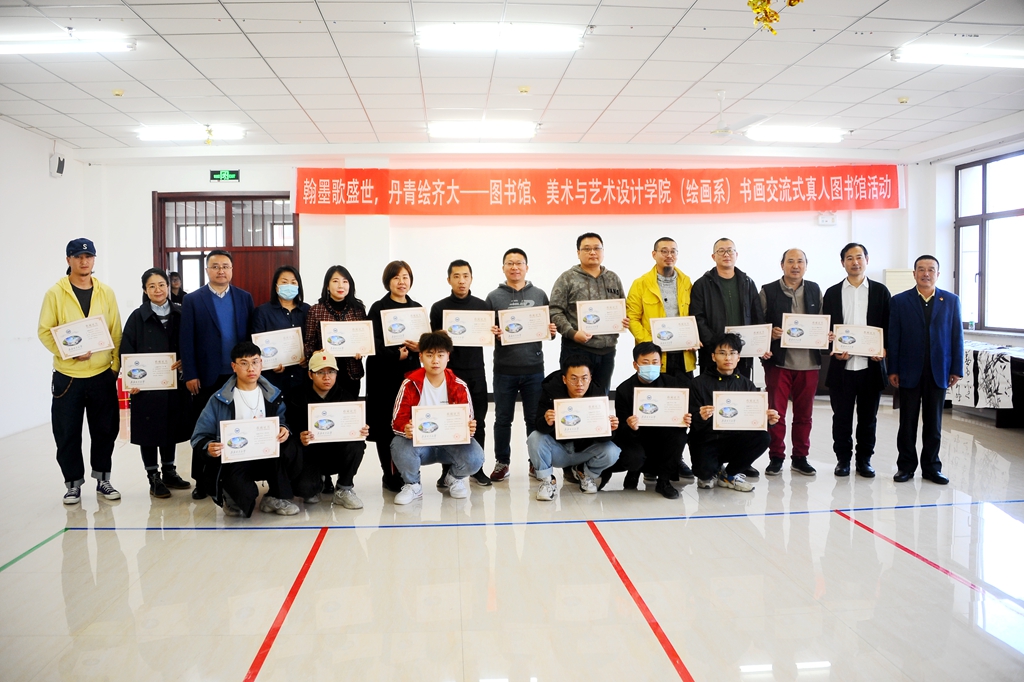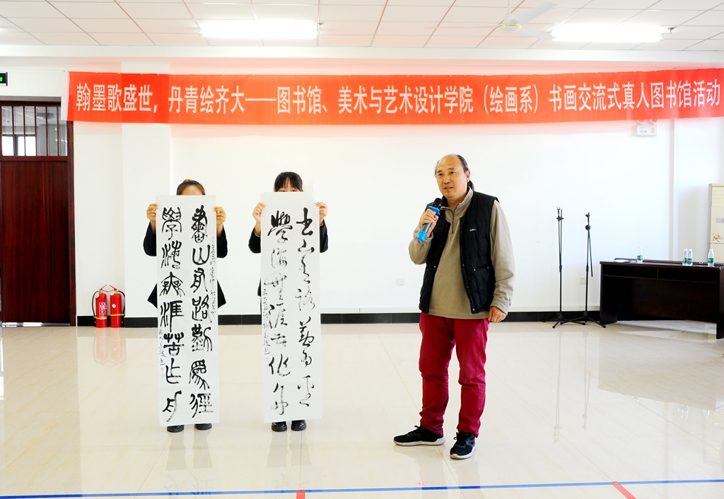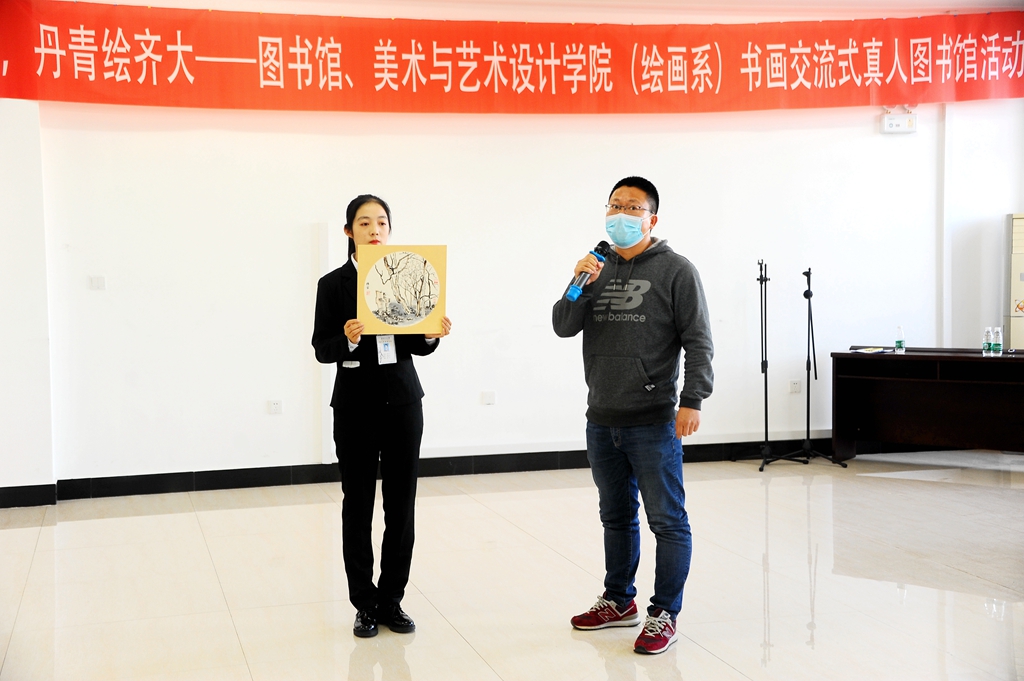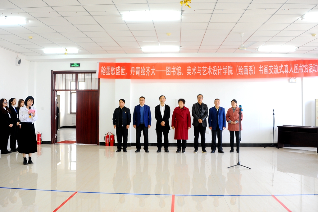 10月21日下午,“翰墨歌盛世,丹青绘齐大——书画交流式真人图书馆”活动在东区图书馆八楼报告厅举办,本次活动由校党委宣传部、校团委、校图书馆与美术与艺术设计学院(绘画系)共同举办,校图书管理委员会、拾光破晓微剧社协办。校党委常委、宣传部长王晓梅,美术与艺术设计学院党委书记周永富、院长范铁明,校团委副书记马小华,图书馆党委书记胥军、馆长尹鸥、副馆长岳景艳,美术与艺术设计学院绘画系系主任申元东、绘画系各教研室负责人以及相关教师和学生代表参加了活动。