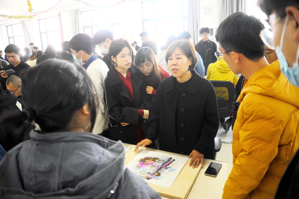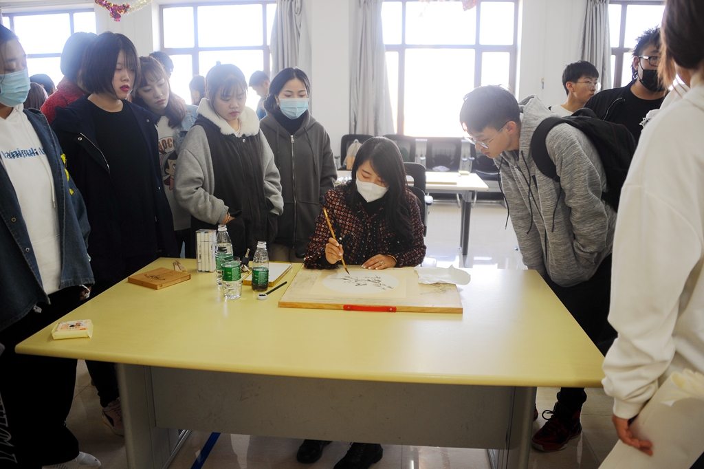 作画结束后,绘画老师代表们以独特的文化视角为参加活动的师生观众诠释了绘画作品的深层次涵义,让大家对油画、国画、版画、壁画等绘画形式有了更深入的了解,真正感受到文化与艺术的完美结合,也让大家深刻领悟到优秀文化蕴涵的思想观念、人文精神、道德规范。
