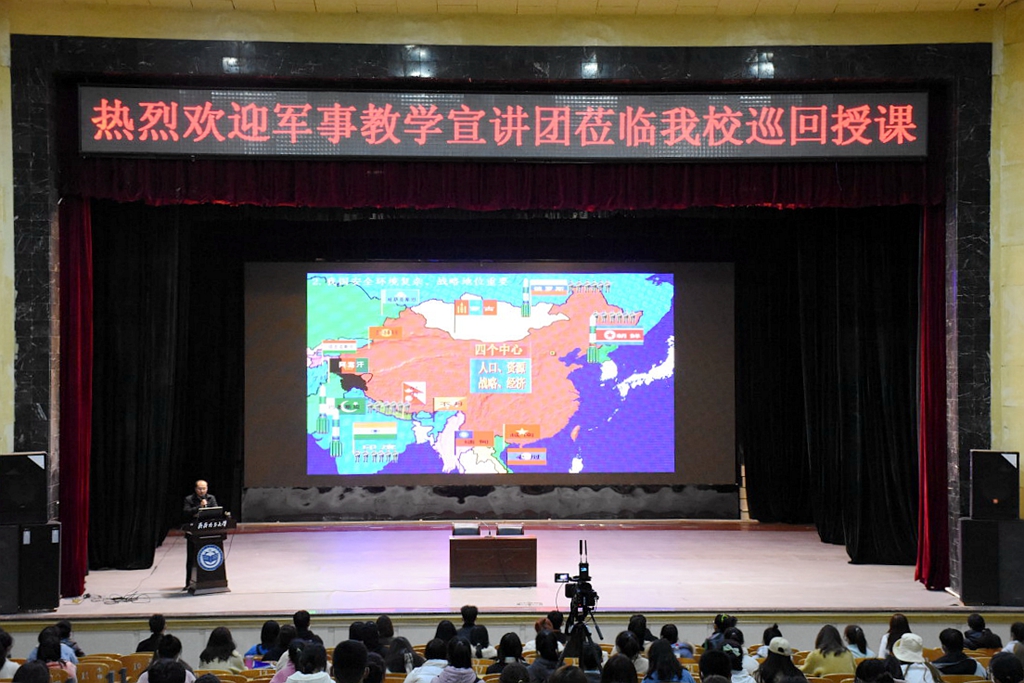 课上,李彦涛老师以《中国周边安全环境》为题,从军事角度对中国周边安全环境概况、中国陆上安全环境及中国海上安全环境进行了深入浅出的解读,使同学们进一步强化了国防观念,开拓了军事视野,提升了军事理论素养。