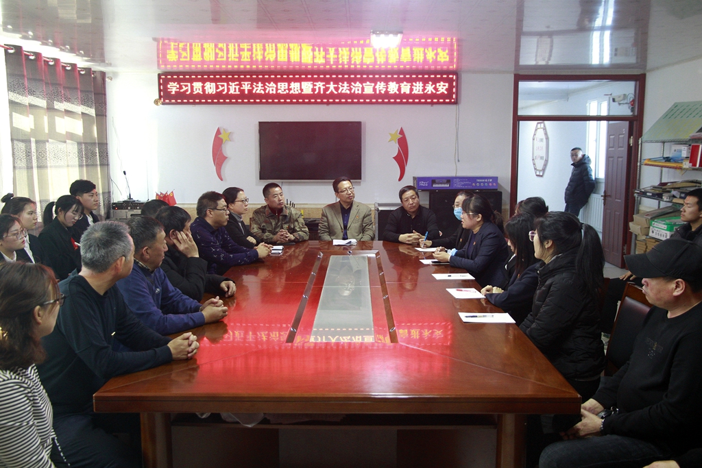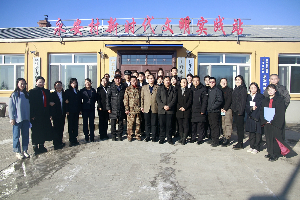 为深入学习贯彻习近平法治思想,深化新时代文明实践中心共建共育,落实《关于印发<万象城AWC官方网站与拜泉县新时代文明实践中心、拜泉县上升乡永安村新时代文明实践站结对共建方案>的通知》(齐大办(党)字〔2020〕6号)的文件精神,在第七个“国家宪法日”即将到来之际,11月28日,哲学与法学学院党委书记于春梅,校党委宣传部副部长何强,哲学与法学学院副书记张树启,带领哲学与法学学院30余名师生,前往拜泉县上升乡永安村开展习近平法治思想宣传、法律援助等活动,大力弘扬宪法精神。