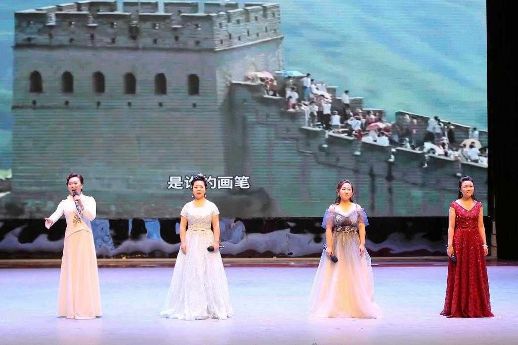 音乐与舞蹈学院朱艳彬、杜娟、张军、刘瑶四位老师共同演唱的女生四重唱《百年画卷》,由杨春达作词,朱艳彬作曲,歌曲以朴实、凝炼的歌词、圆舞曲的节奏、欢快活泼的旋律,讲述了中国共产党成立一百年来的丰功伟绩,描绘了百年以来中国之巨变和百姓的幸福生活,展现出在中国共产党领导下的中国百年风采。