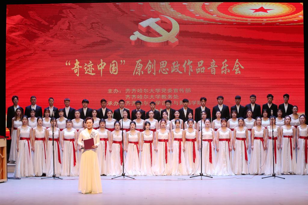“风声、雨声、读书声、声声入耳;家事、国事、天下事、事事关心”,这是每一名大学生都应该具有的家国情怀。近年来,在鼓励学生主动参加活动的同时,音乐与舞蹈学院的教师们也率先垂范,充分发挥文艺工作者的职责作用,带领学生关注祖国发展,把教学之中的仁爱之心延伸到社会活动中去,聚焦扶贫、小康、发展、抗疫等主题争相进行艺术作品创作,其中钢琴组曲《卜奎印象》《中国的“中”》、抗疫歌曲《故事中国》《你没有走远》《最美的旗帜》《奇迹的颜色》等优秀作品获得国家级、省级大奖。教师们不仅自己创作、表演这些作品,还把这些优秀作品引入课堂,实现社会实践与课堂的有机融合,将深植于作品中的价值观和正能量“基因式”地融入教学中,培养学生兼济天下的大胸怀。在“奇迹中国”原创思政作品音乐会的16首作品中,通过小康路上、抗疫赞歌、百年画卷三个乐章,歌颂了扶贫攻坚、抗疫逆行、追梦奋斗中我党、我国人民不忘初心,砥砺前行的闪光形象。演出中,师生共同体会仁爱之心,深情演绎家国情怀,让思政元素为社会实践活动铸魂,成为课堂教学的有力补充。