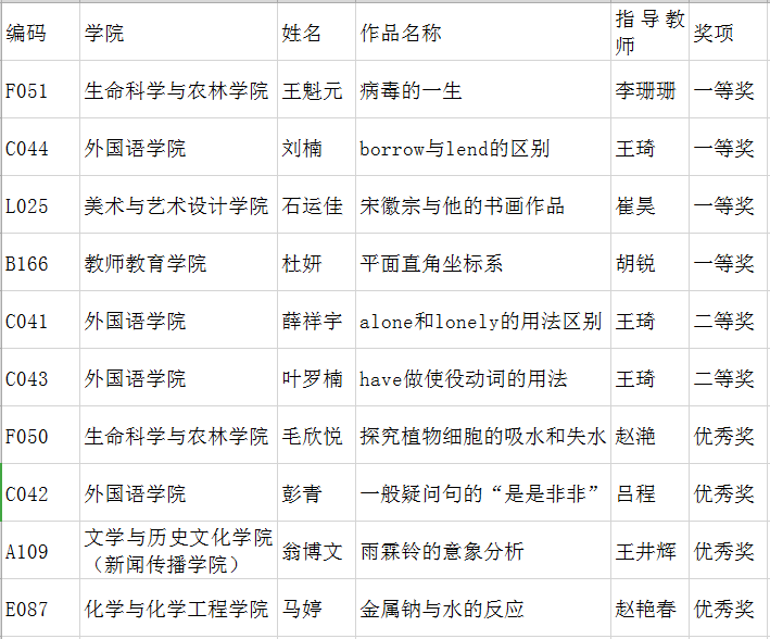 为加快万象城师范类学生教学综合能力培养,推进高素质教师队伍建设和精品课程建设,普及信息化教学手段,促进信息技术与教育的深度融合,探索微课在课堂教与学创新应用中的有效模式,促进优质教育资源共建共享,按照“全国第二届师范生微课大赛”组委会要求,万象城经过严格评审,遴选优秀微课作品参加了全国第二届师范生微课大赛决赛,近日决赛成绩公布,万象城共有十名选手脱颖而出,其中四名学生荣获大赛一等奖,两名学生荣获大赛二等奖,四名学生荣获大赛优秀奖。具体获奖信息如下: