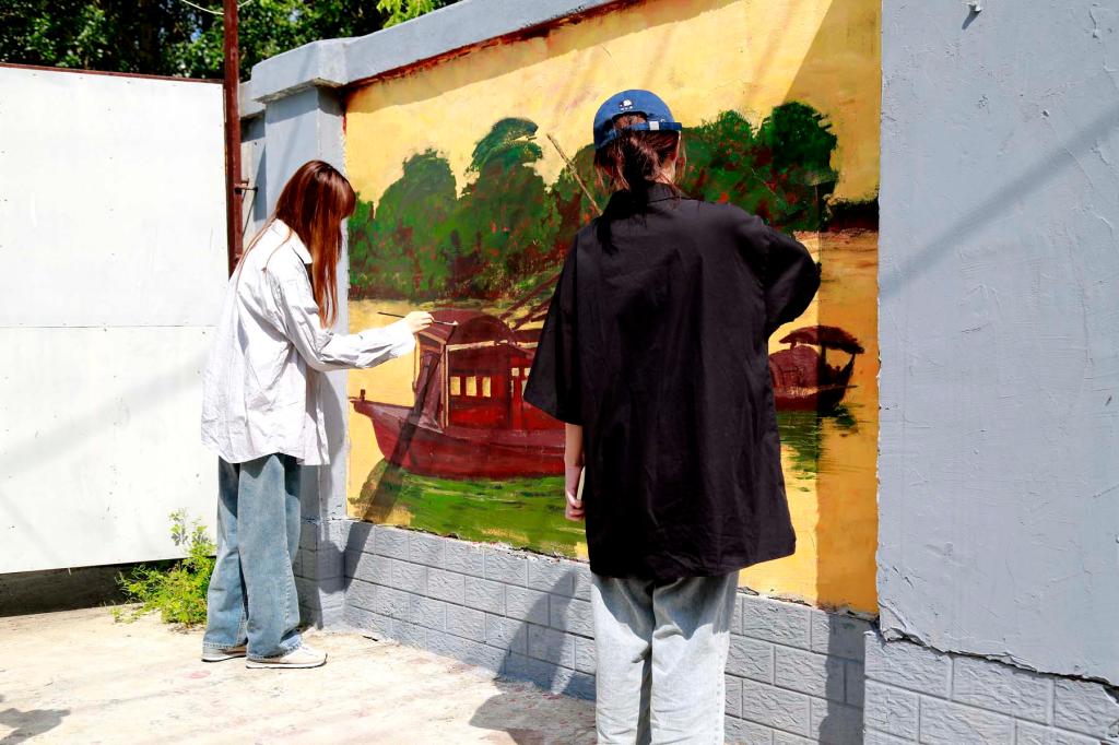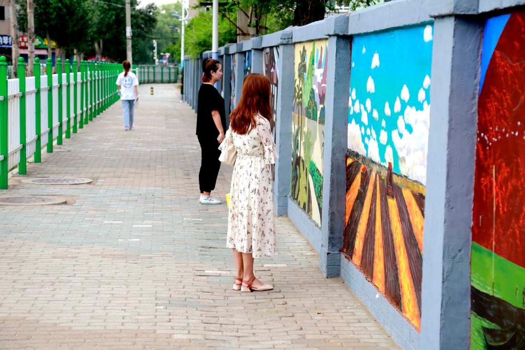 近日校园内由东校区到中校区必经的“小路上”,出现一道色彩鲜艳、主题鲜明的百米党史彩绘墙,引得课间路过的同学们纷纷驻足观赏,不少同学还拿出手机拍摄,把这美丽的画面通过网络分享给远方的朋友。