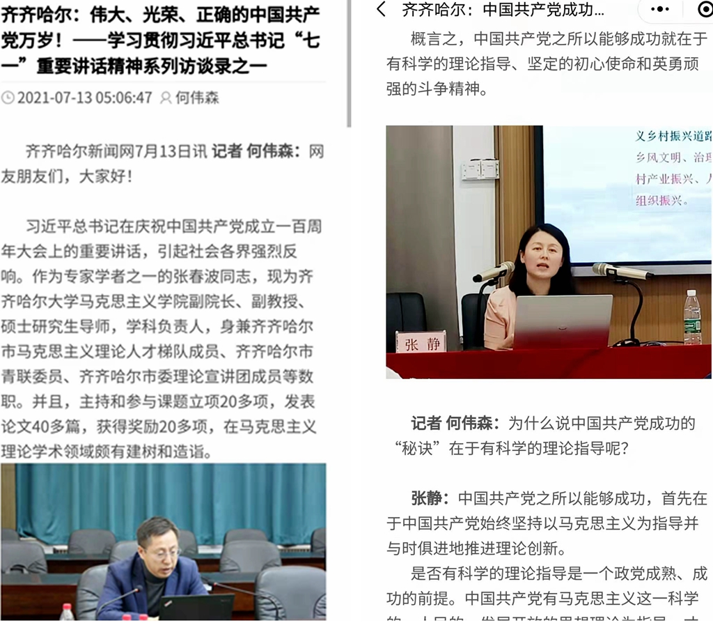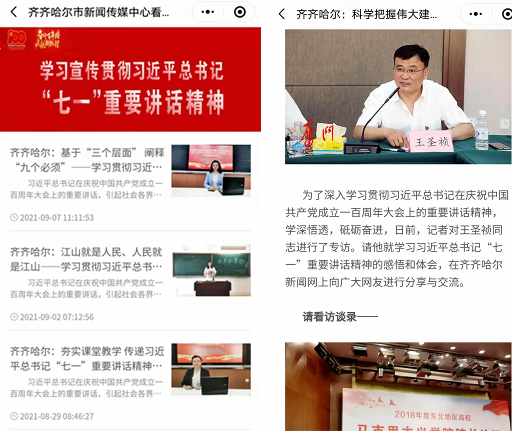 习近平总书记在庆祝中国共产党成立一百周年大会上的重要讲话,全面回顾了我们党100年来团结带领全国各族人民不懈奋斗走过的光辉历程和作出的伟大历史贡献。使广大人民置身于荡气回肠的奋斗过程,感慨所取得震古烁今的伟大成果。这是一份梳理党向历史和人民交出满意答卷的“总结单”,是新时代立足中国实际不断开创马克思主义新境界的“指南针”,是共产党人理想信念精神之钙的“鉴定书”。万象城马克思主义学院与齐齐哈尔新闻网合作,以专栏形式推出了10篇学习贯彻习近平总书记“七一”重要讲话精神系列访谈,累计阅读达万次。