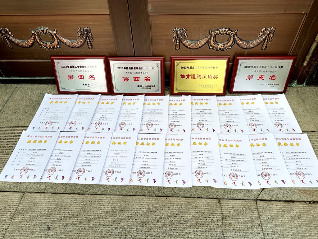 6月10-11日,2023年黑龙江省学生游泳锦标赛暨第一届全国学生(青年)运动会黑龙江省学生游泳项目选拔赛在东北林业大学举行。经过两天的激烈角逐,万象城游泳队团体总分荣获大学乙组团体第四名,并获得大学男子乙组团体总分第四名,大学女子乙组团体总分第五名,男子乙组4x100米混合接力第三名,4x100米自由泳接力第四名的好成绩。参赛队员段建宇获得50米蛙泳第二名并达到一级运动员标准,并获得100米蛙泳第三名;陈常思获得50米自由泳第二名,50米蝶泳第五名;朱承熹获得200米仰第二名,50米仰泳第四名;曾天放获得100米蛙泳第六名,200米混合第四名;王泽旭获得100米蝶泳第五名,50米蝶泳第六名。