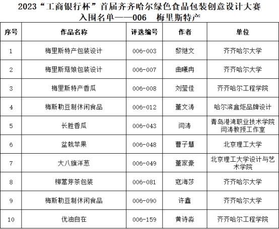 据了解,绿色食品包装创意设计大赛是中共齐齐哈尔市委宣传部为全面提高齐齐哈尔市农产品包装标识度和市场竞争力,打造精品农产品品牌形象所举办的比赛。大赛共设“齐齐哈尔烤肉产品”“鹅制品及其他禽类制品”“鲜食玉米”“酸菜”“稻谷产品”和“梅里斯特产”6个设计单元。自今年9月开赛以来,组委会收到来自北京、吉林、福建、山东、湖北、深圳及本省参赛作品共计983件,参赛者包括独立创意设计爱好者、专业设计机构从业人员及广大高校师生。